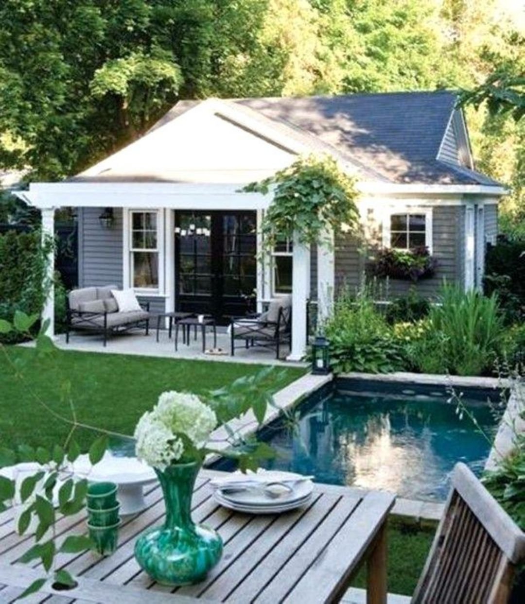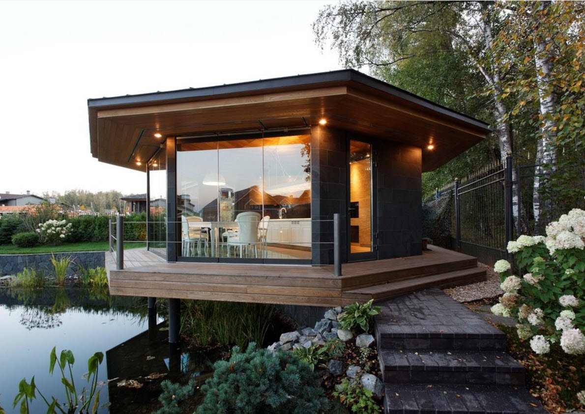 Маленький садовый домик с верандой