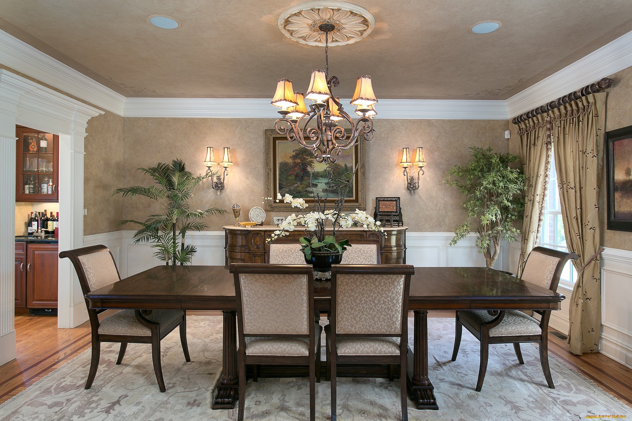 Обои для столовой комнаты в частном доме