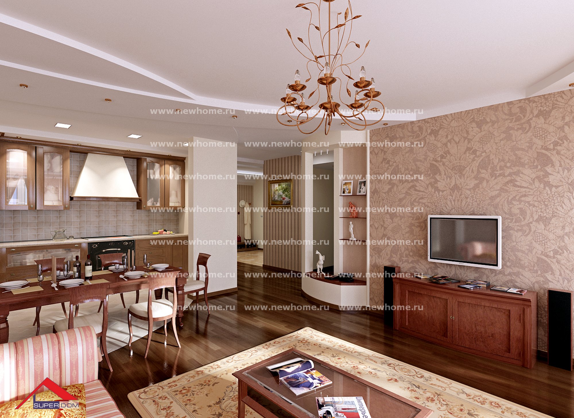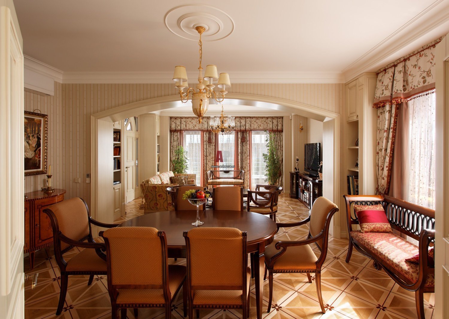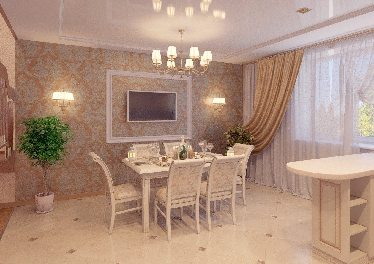 Гостиная-столовая в классическом стиле