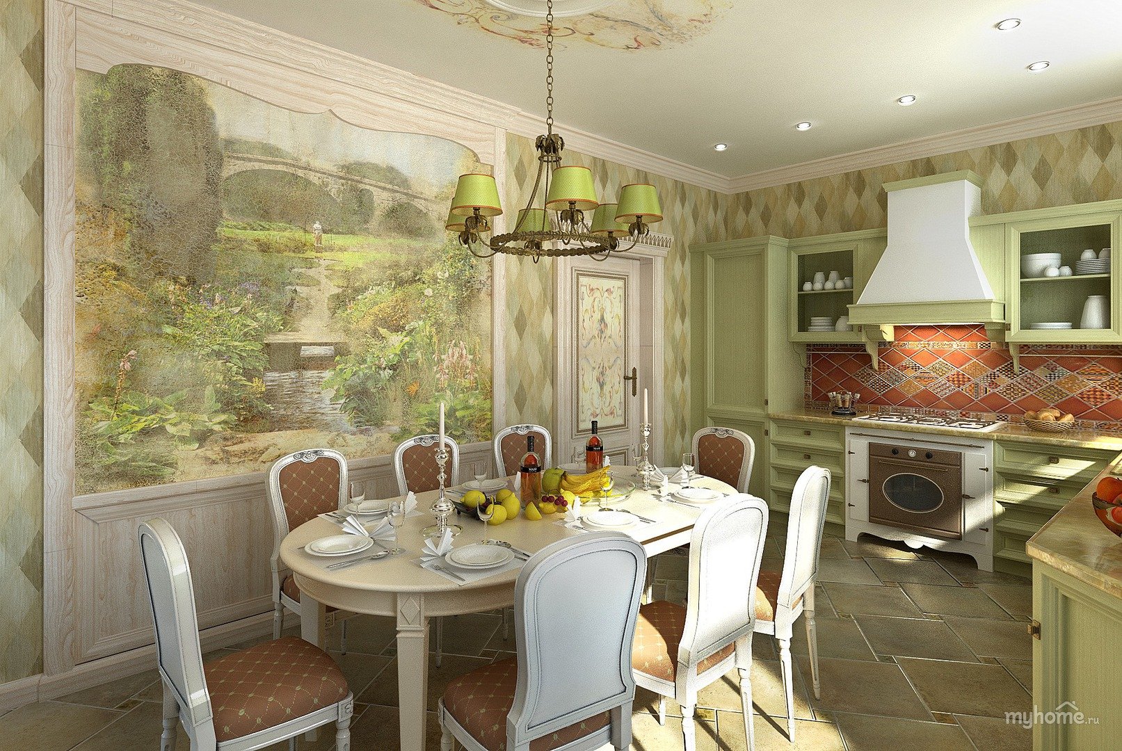 Фрески в интерьере кухни в стиле Прованс