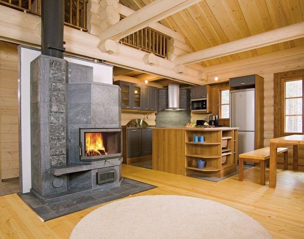 Камин Туликиви в деревянном доме