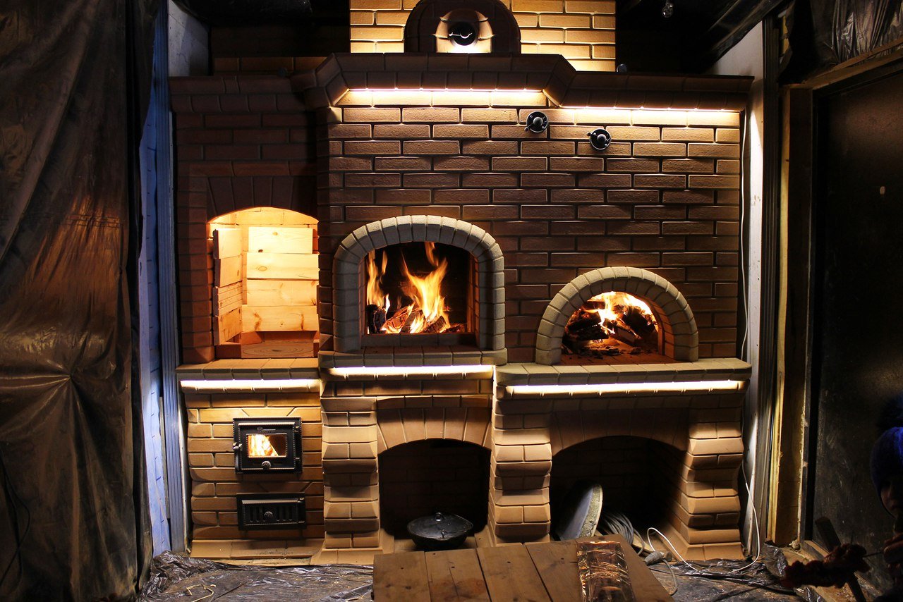 Кирпичная банная печь камин
