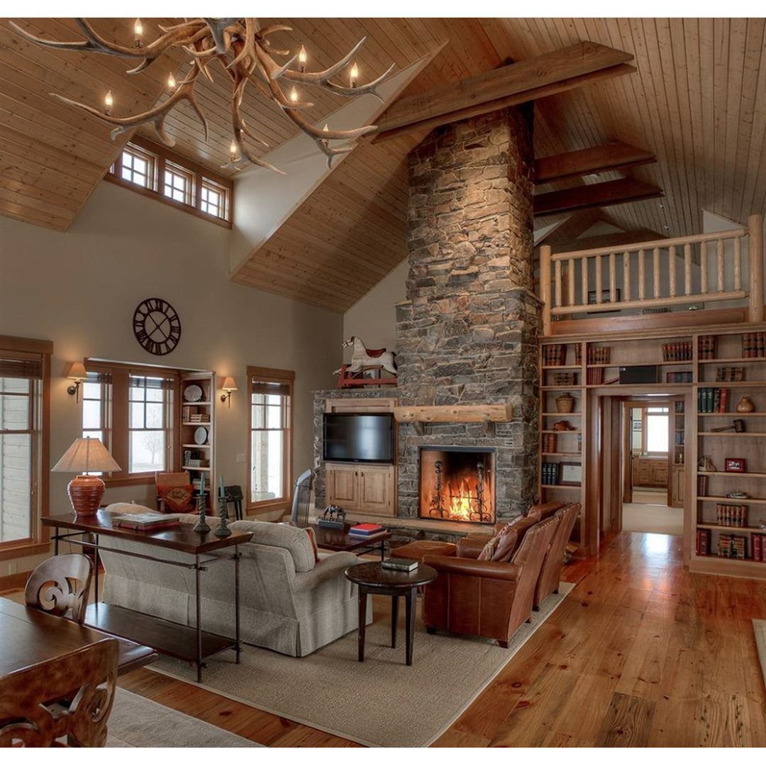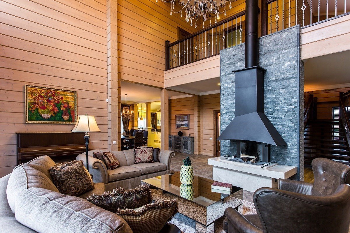 Деревянная гостиная с камином