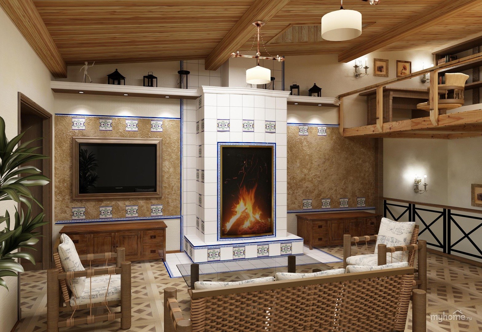 Гостиная с печью камином