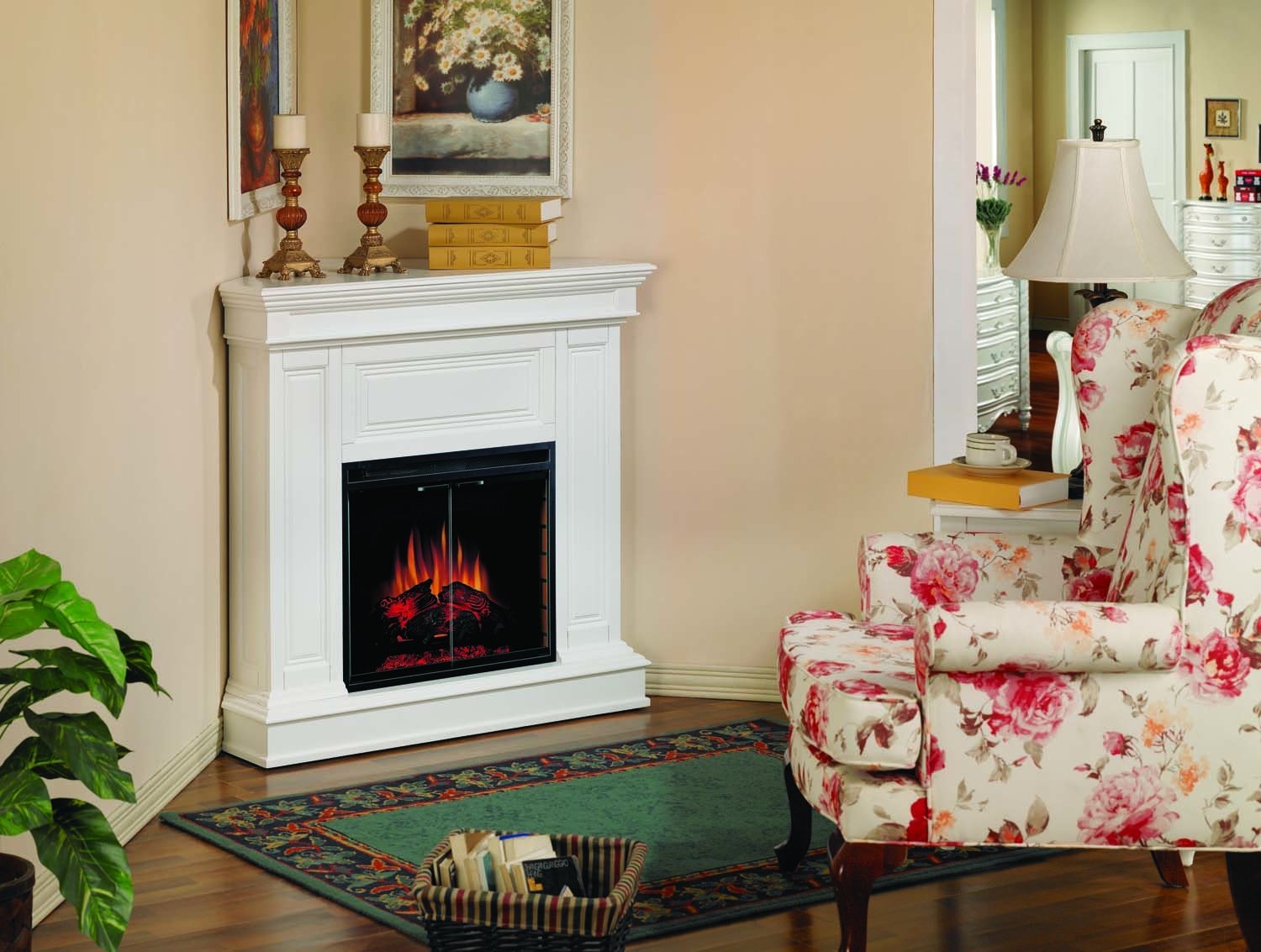 Угловой электрокамин в интерьере