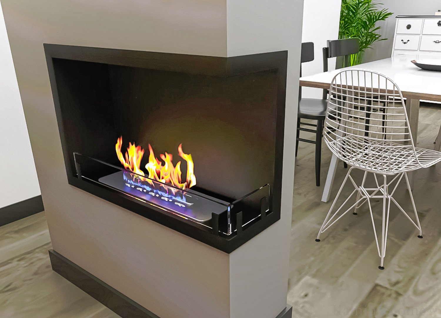 Угловые биокамины в интерьере гостиной