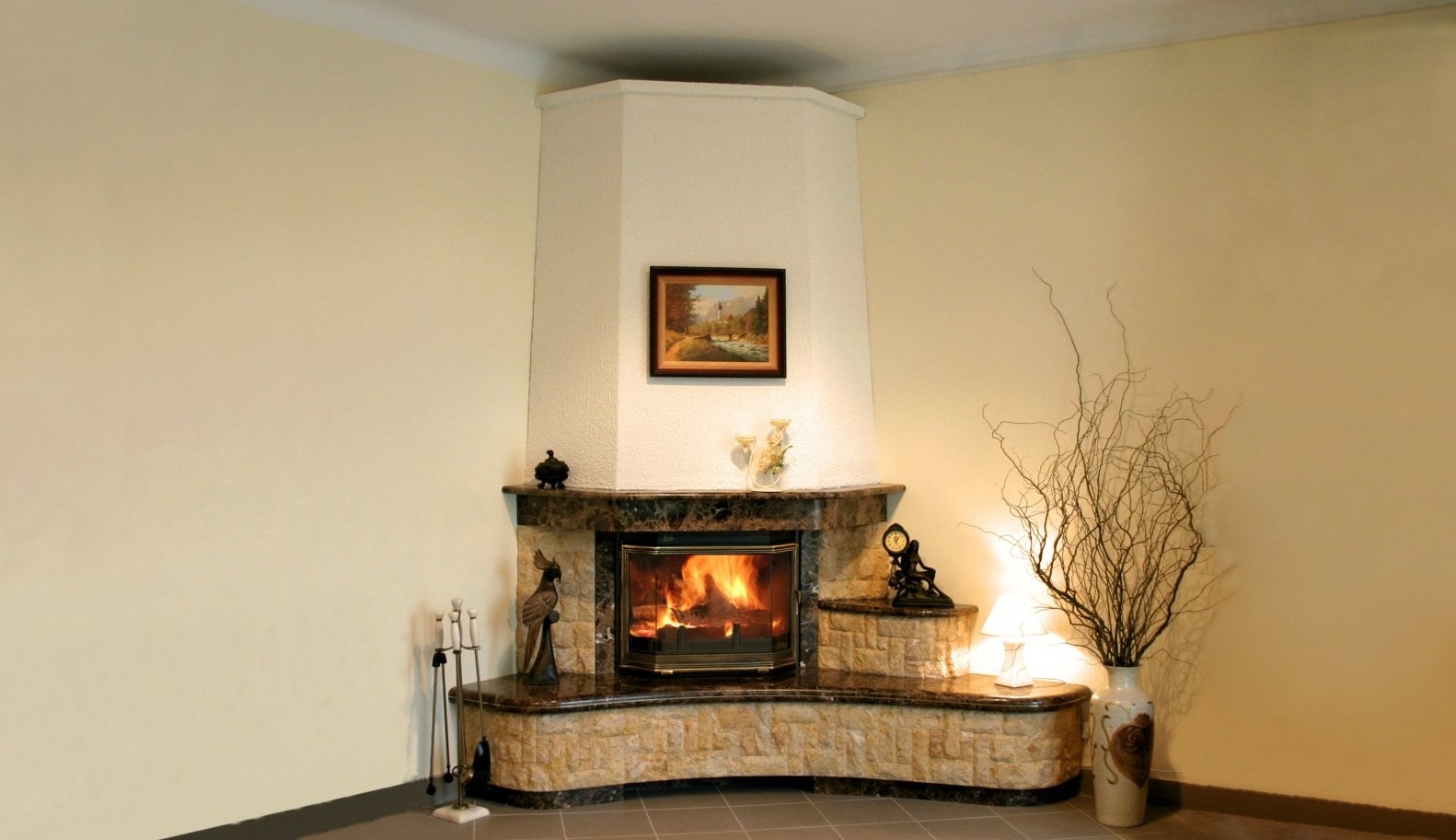 Угловой камин в интерьере квартиры