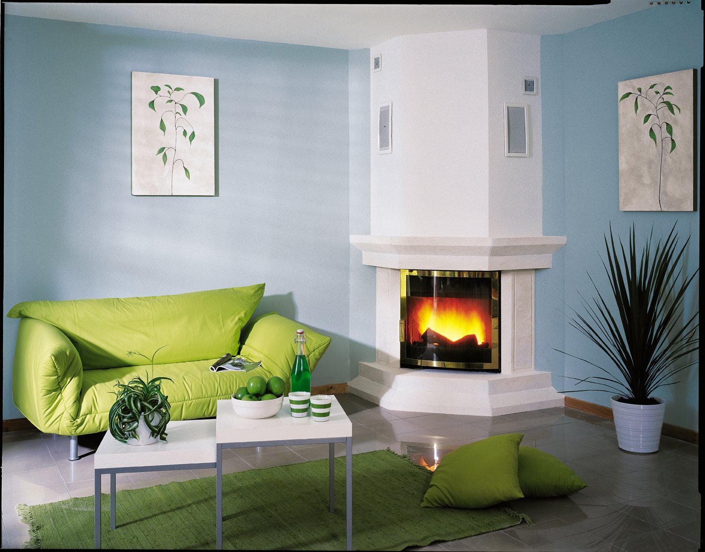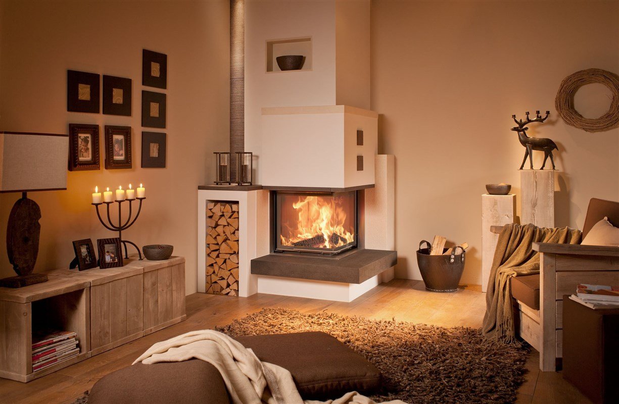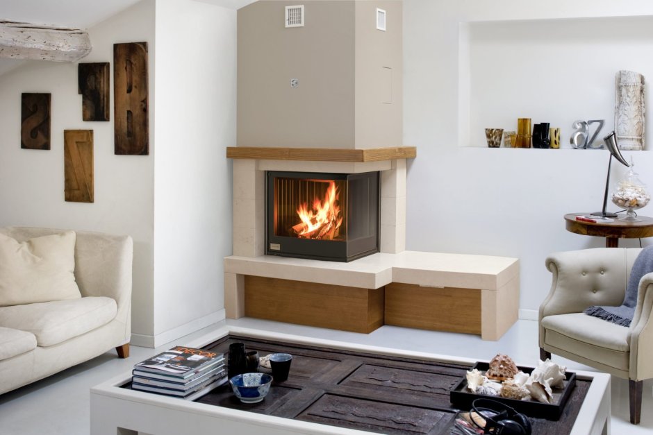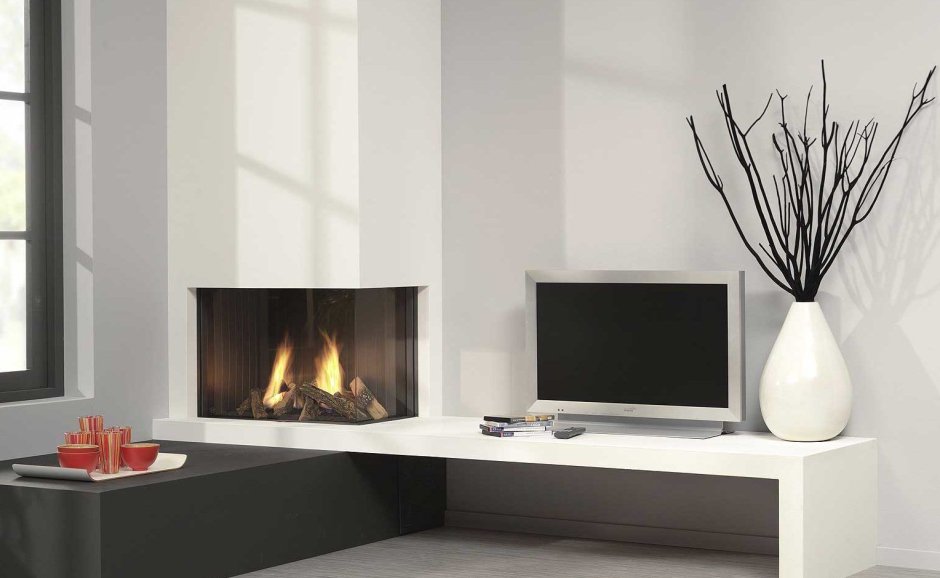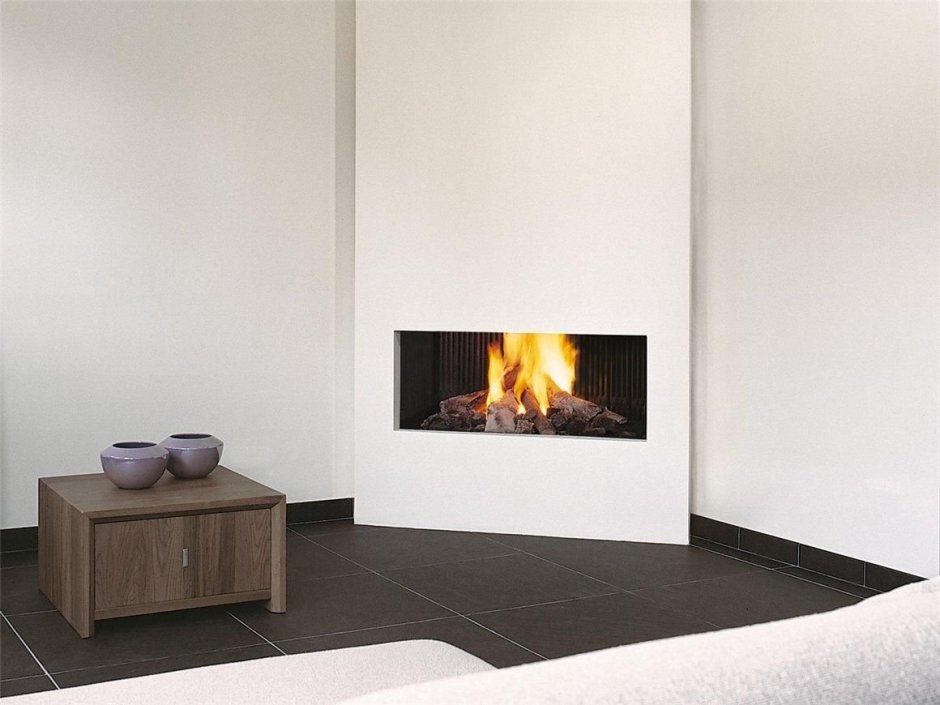 Угловой камин в интерьере