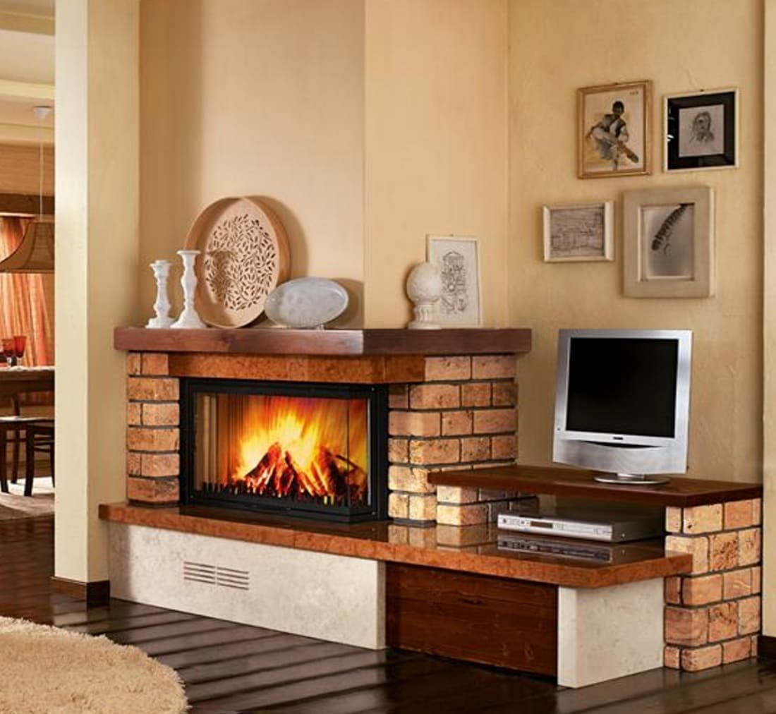 Встроенный камин в угол