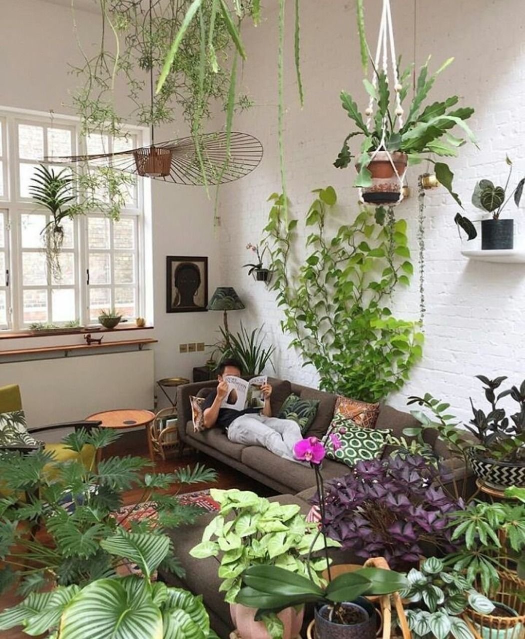 Много растений в интерьере