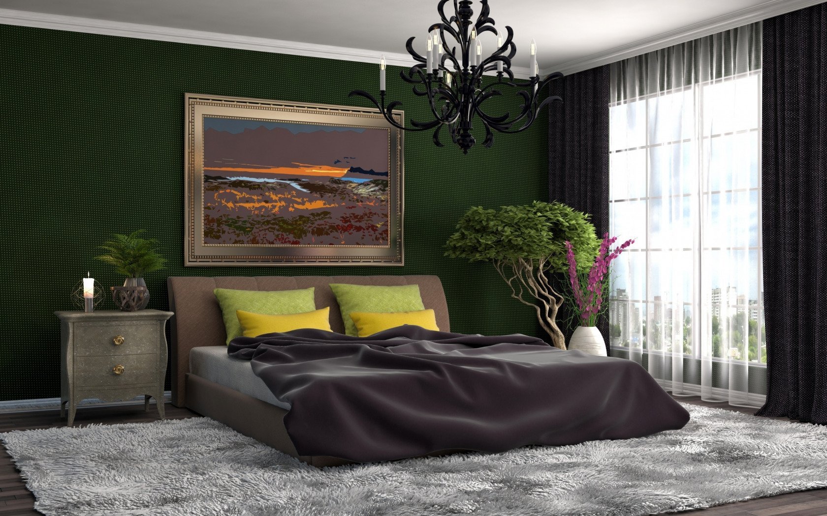 Спальня в темно зеленом цвете