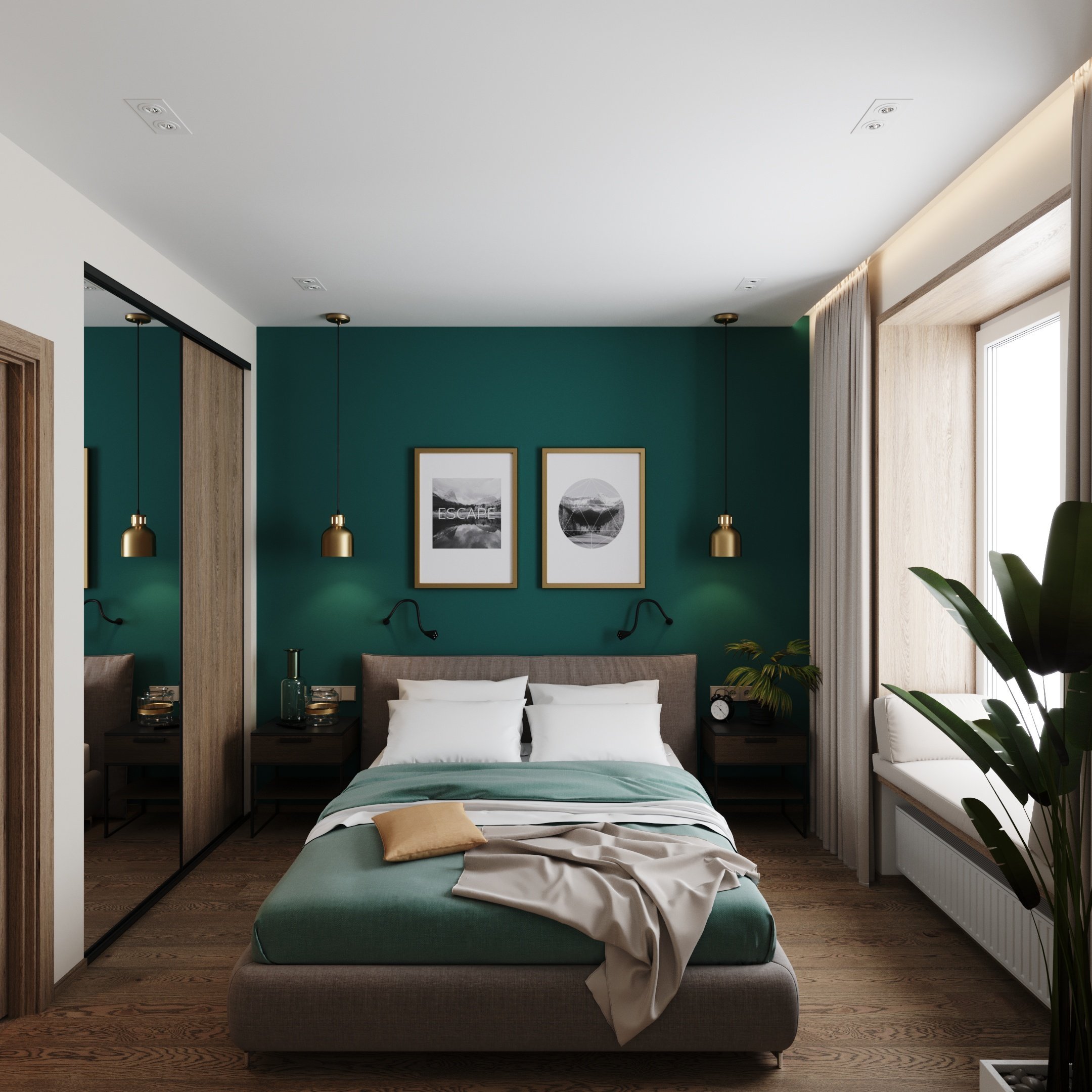 Спальня с изумрудными акцентами
