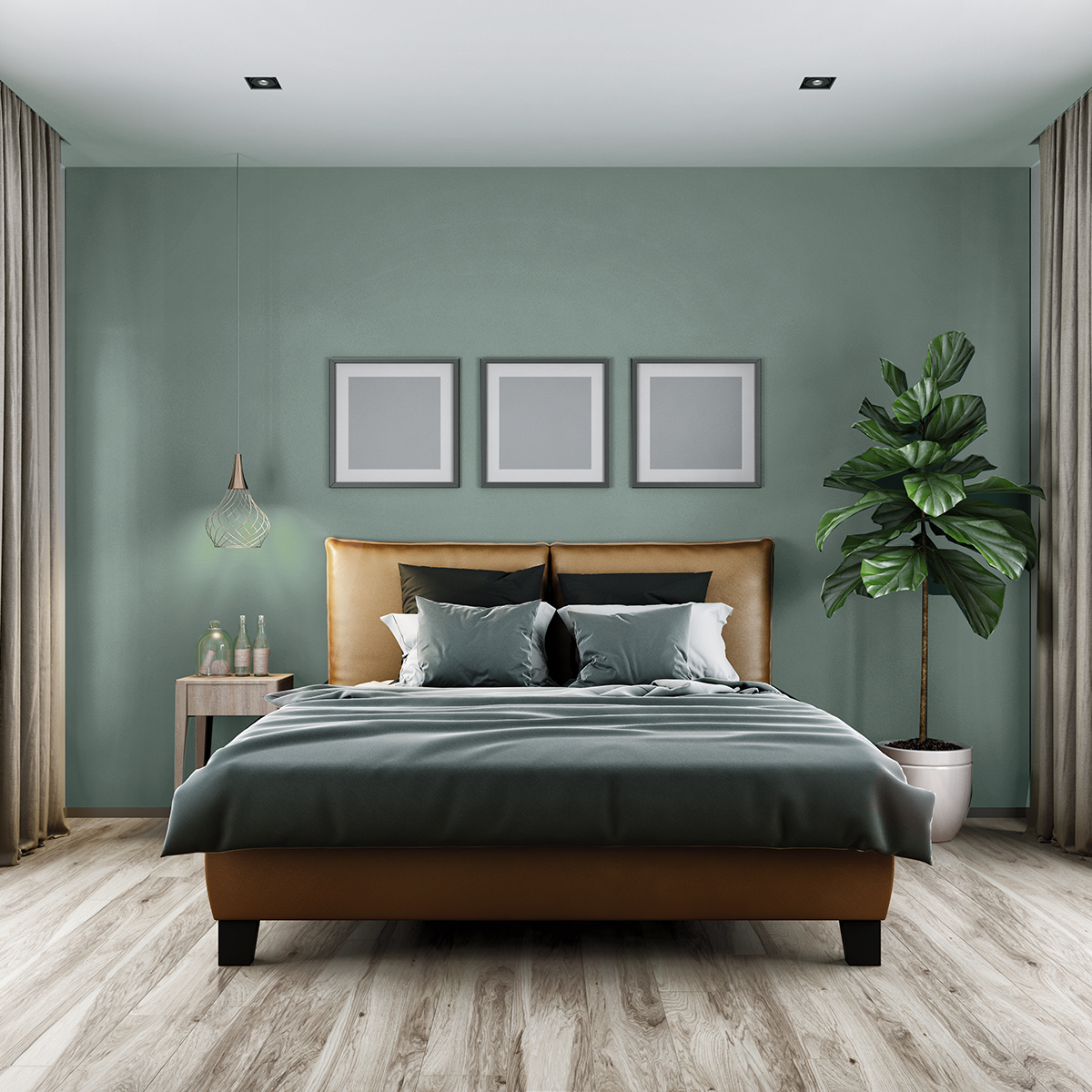 Зеленая спальня в скандинавском стиле