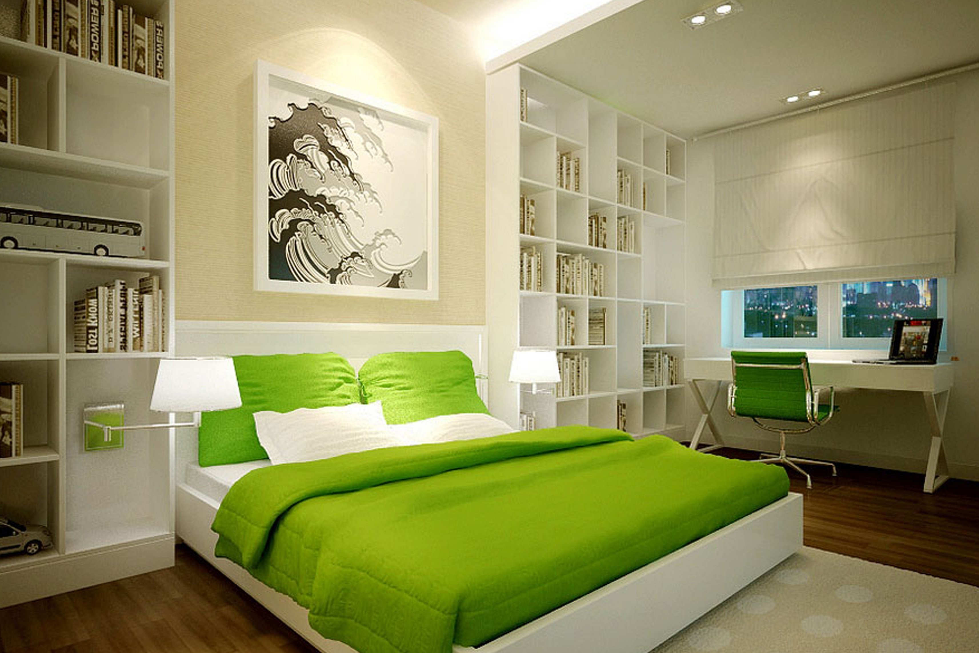 Кислотно зеленая спальня
