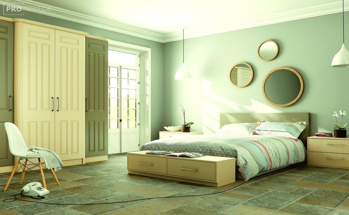 Бежево салатовая спальня