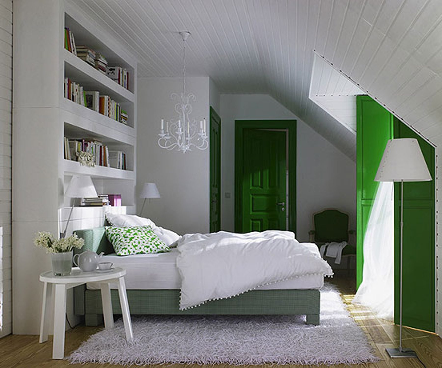 Спальня на мансарде в зеленых тонах