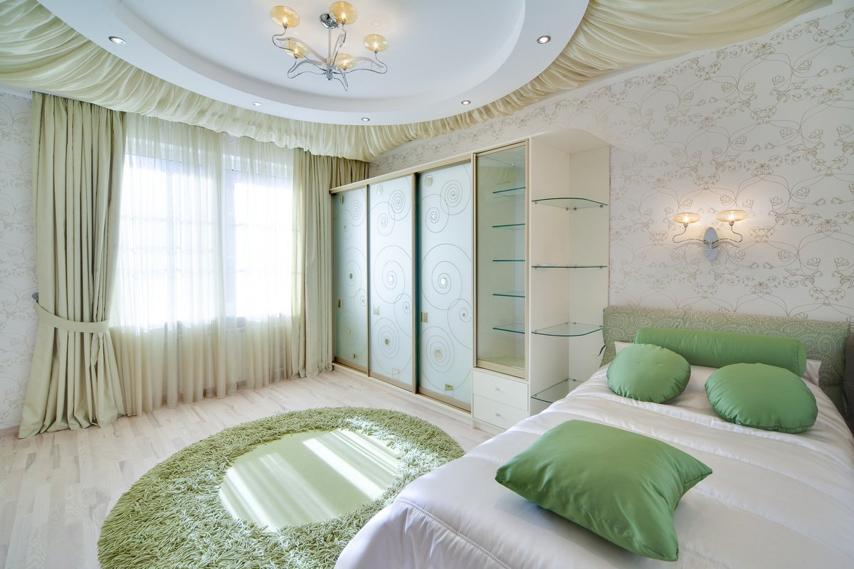 Зелёный потолок в спальне