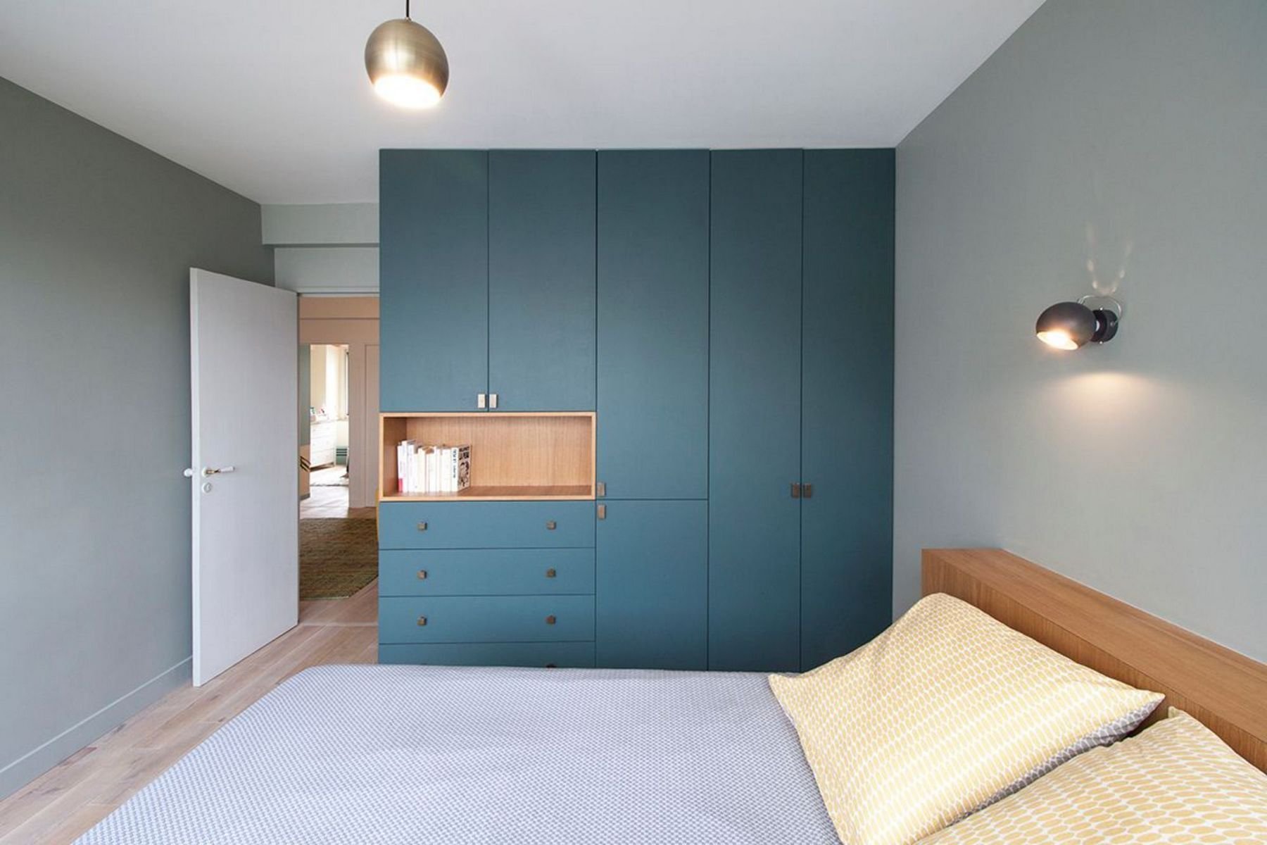 Зеленый шкаф в интерьере спальни