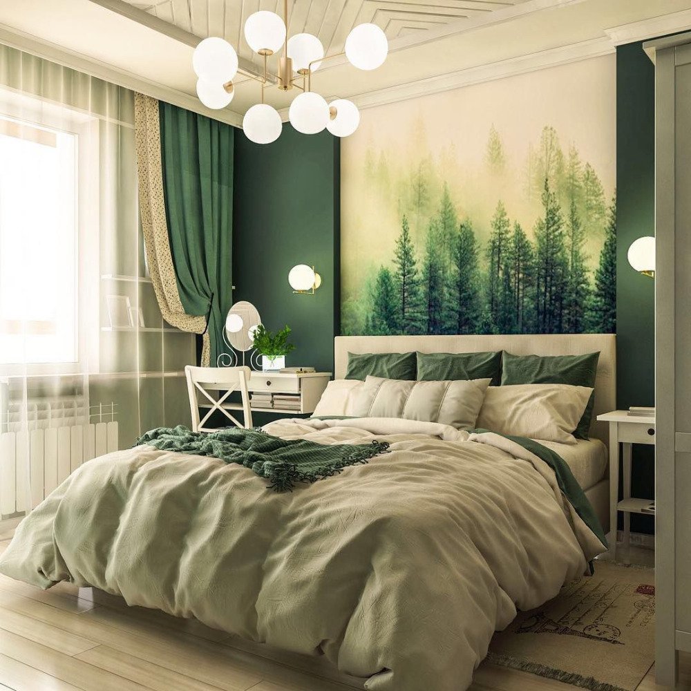 Спальня в зеленых тонах