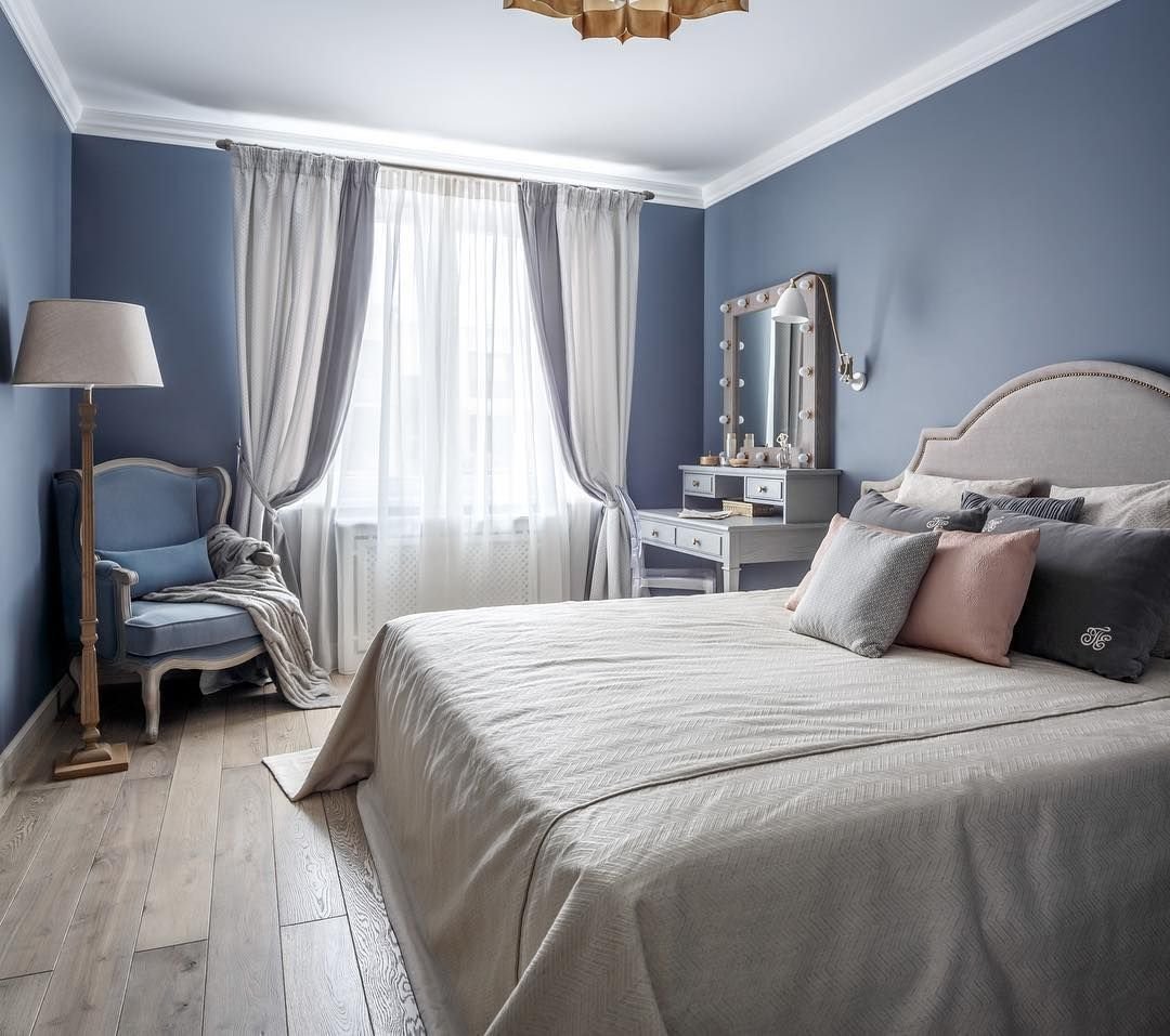 Серо голубая спальня