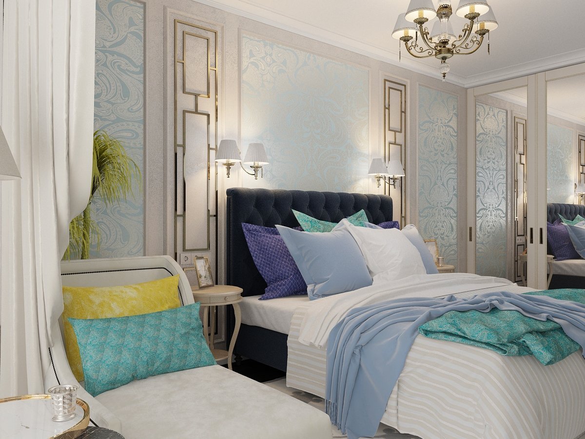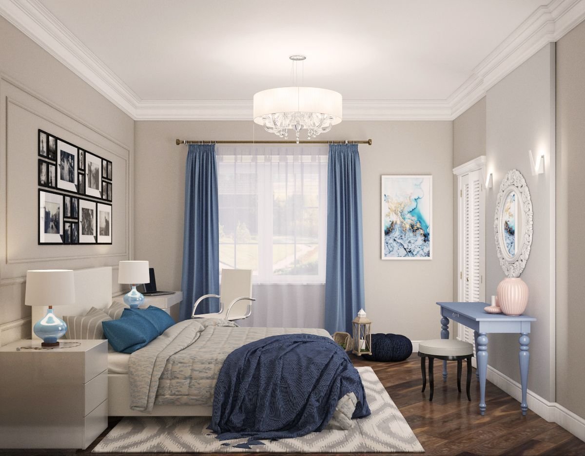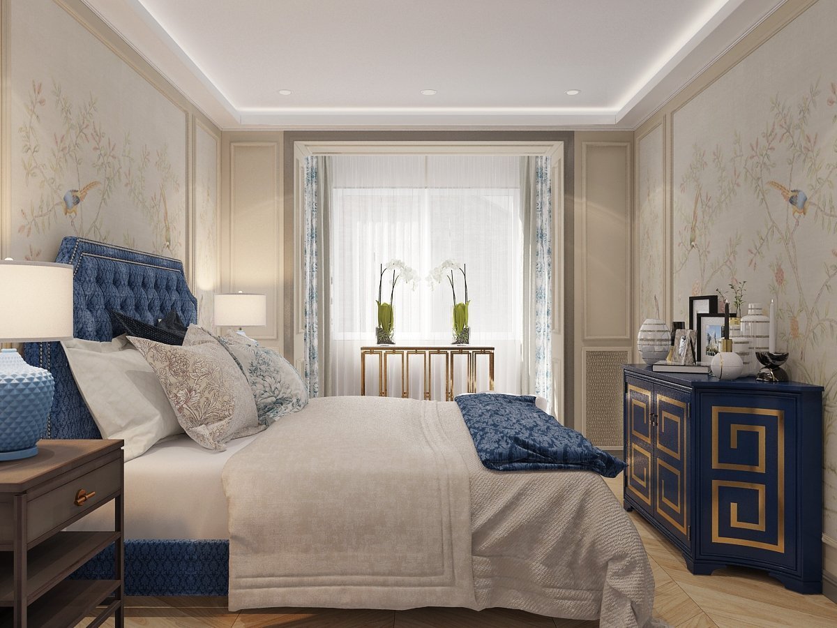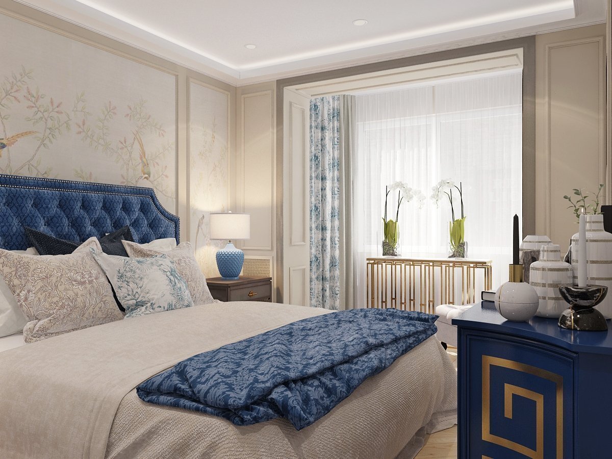 Спальни в синих тонах в стиле Неоклассика