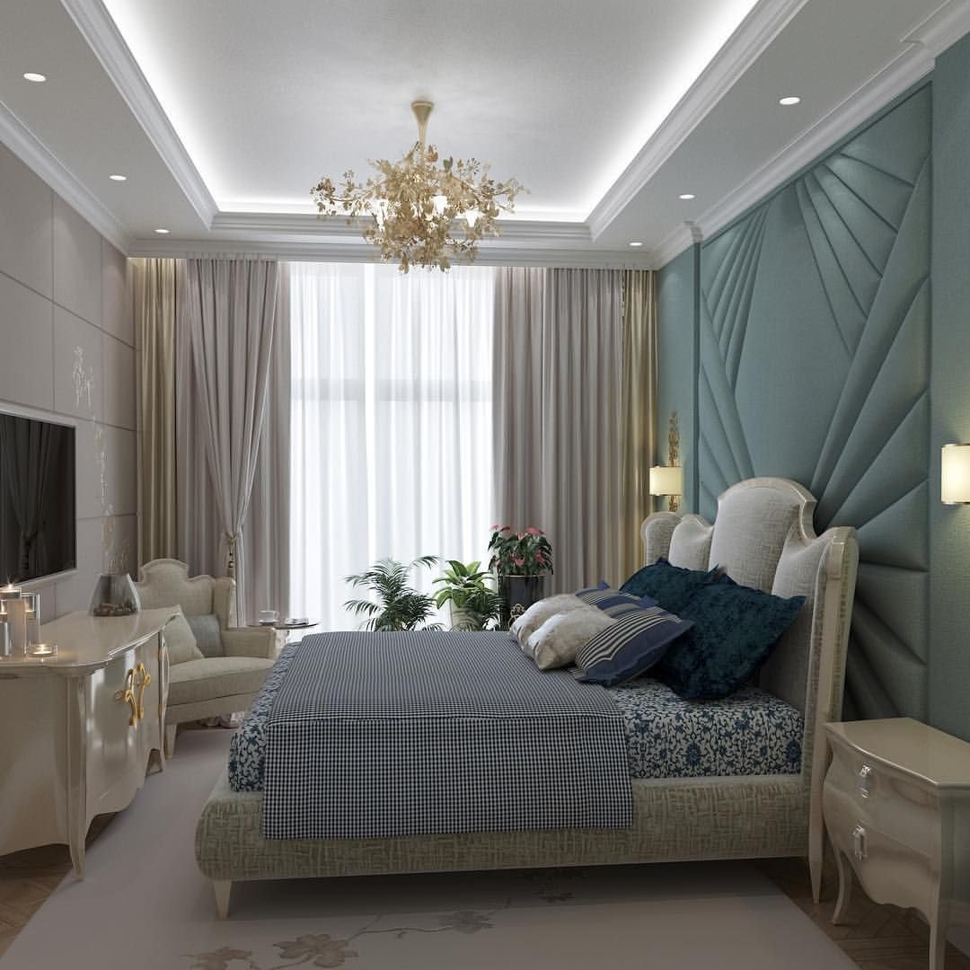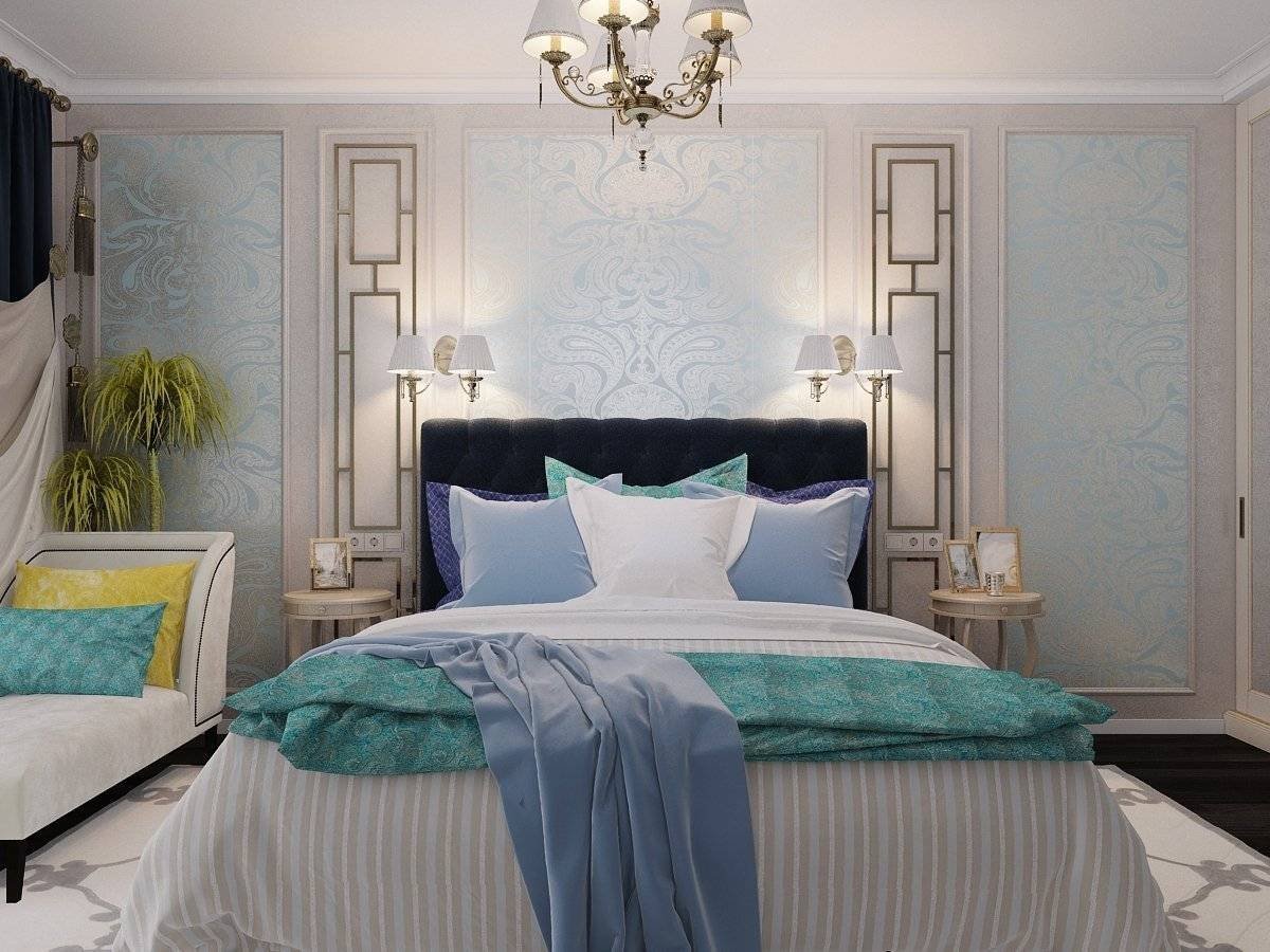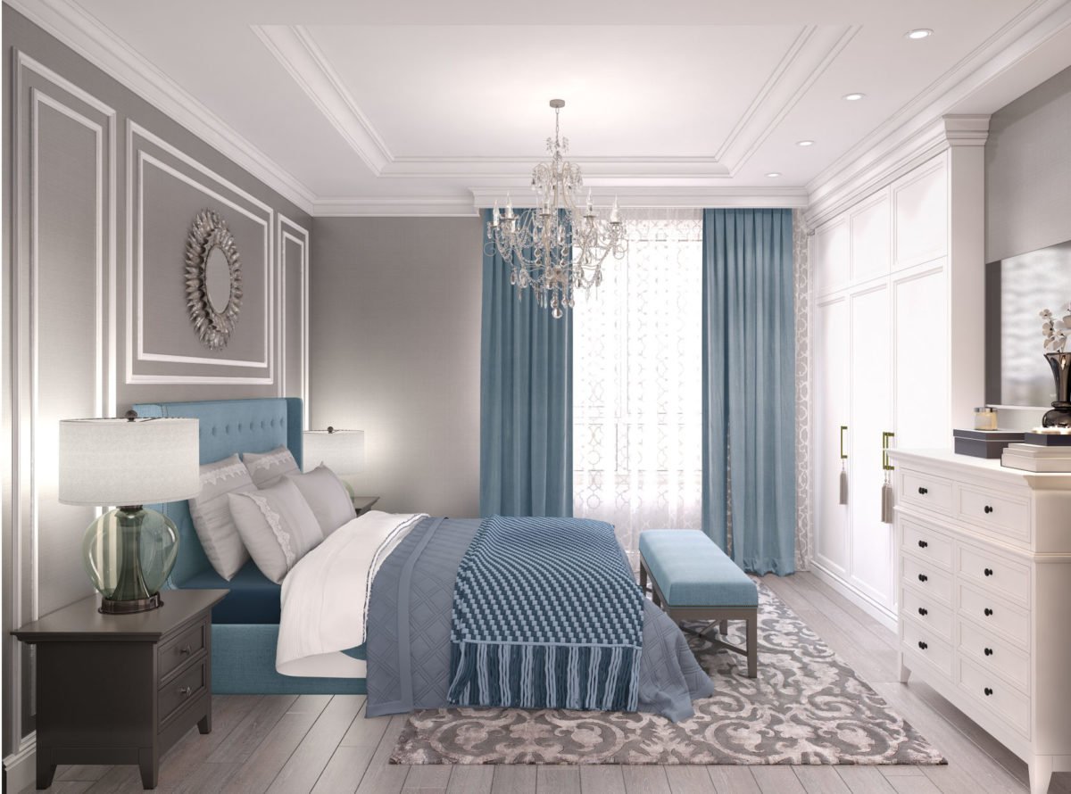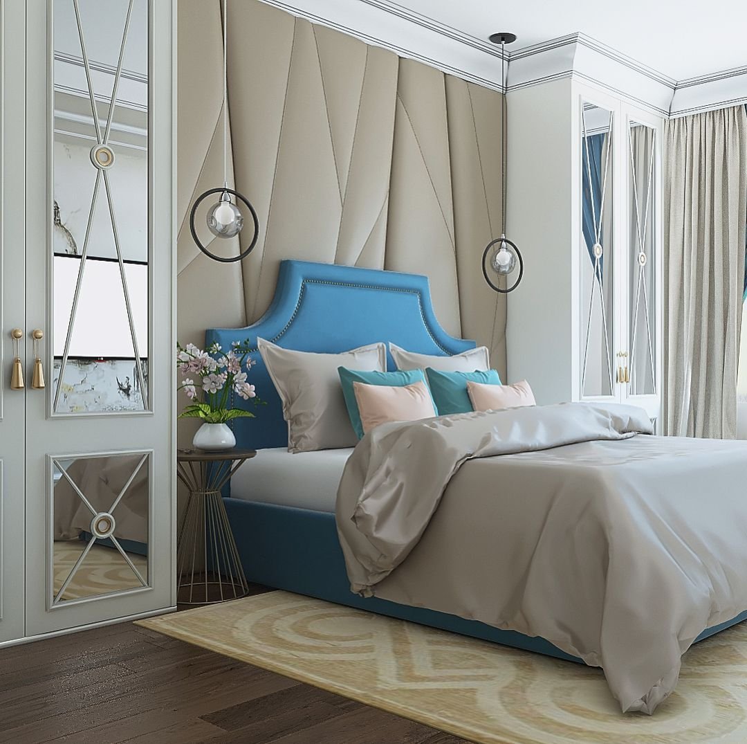 Спальни в синих тонах в стиле Неоклассика