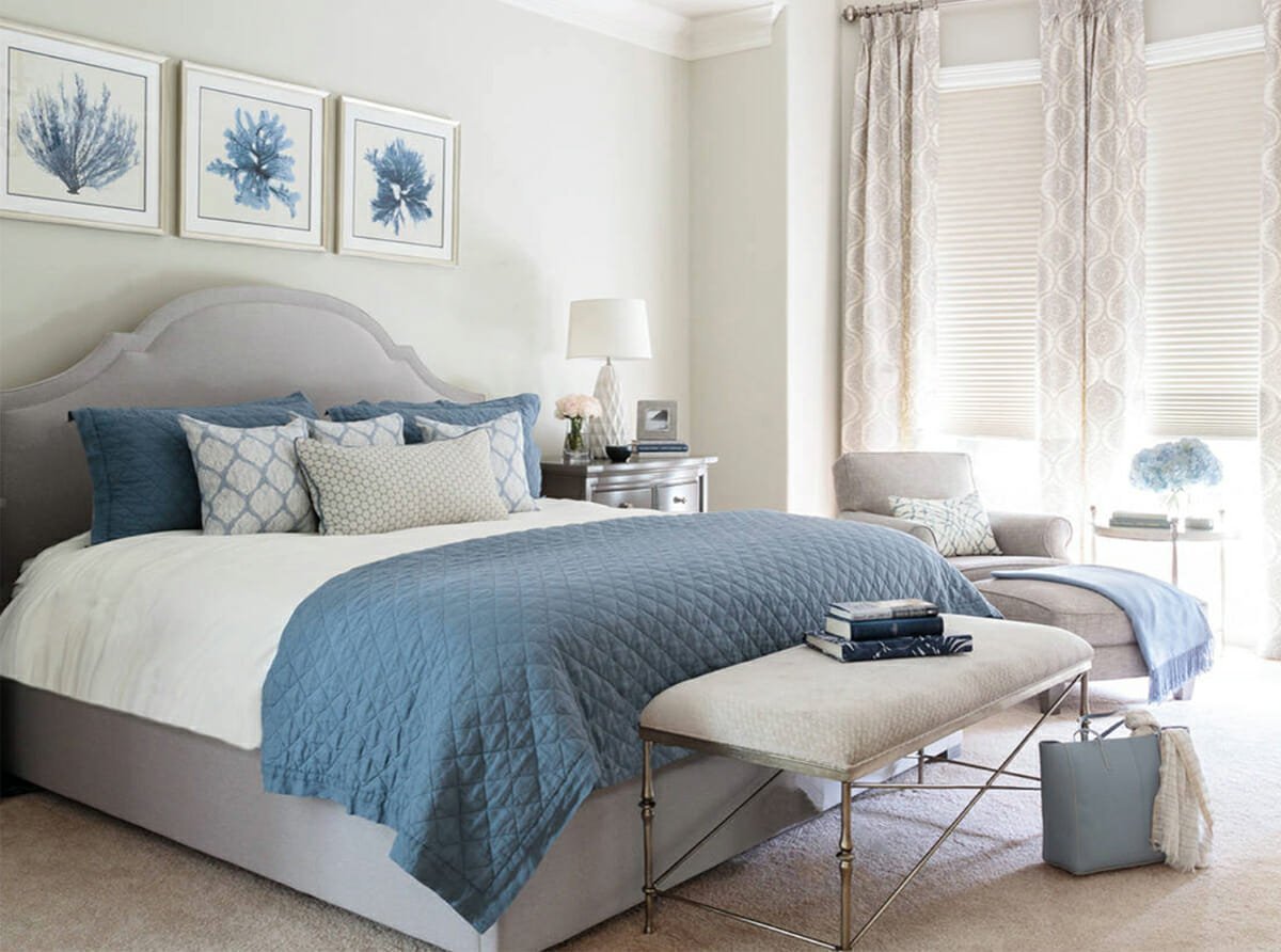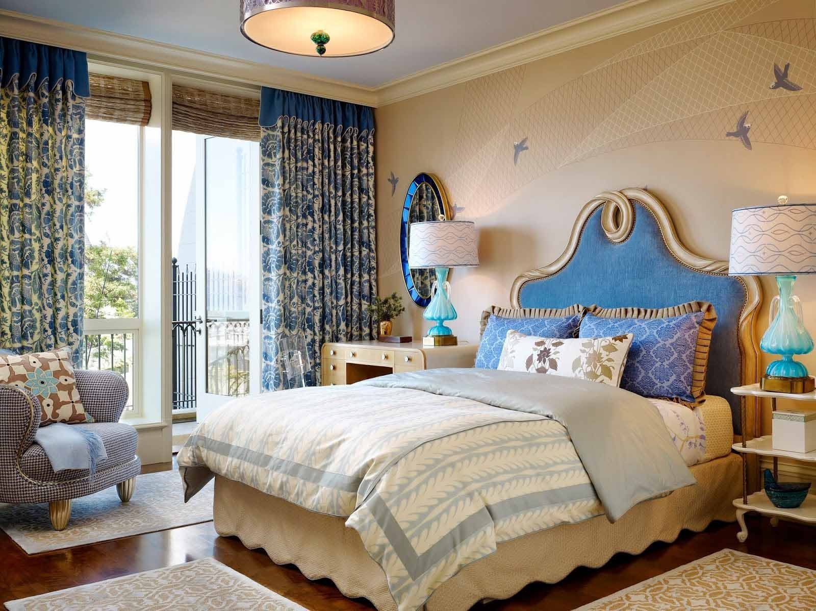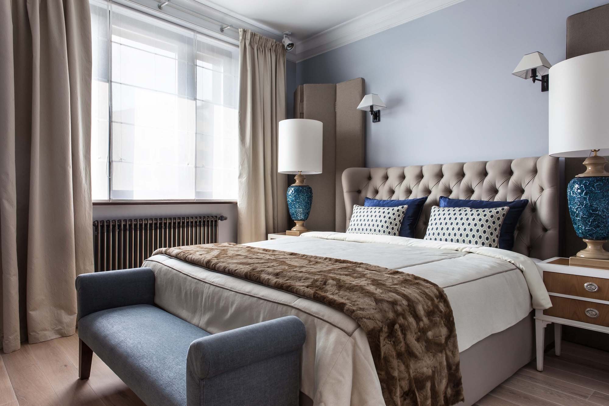 Спальня в голубых и бежевых тонах