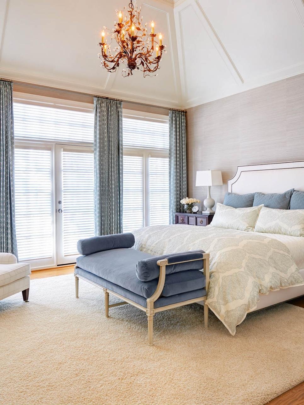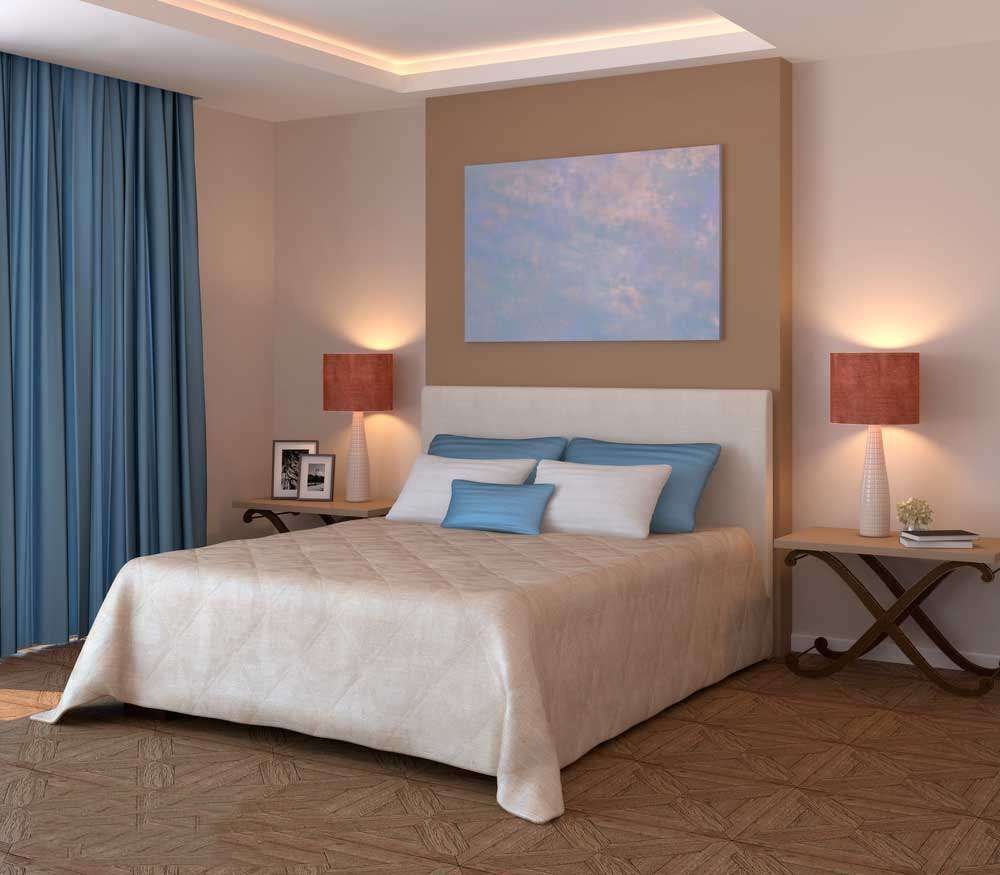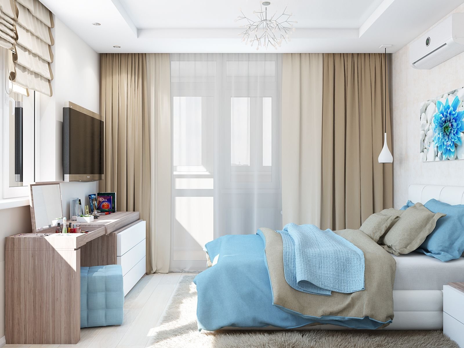 Спальня в голубых и бежевых тонах