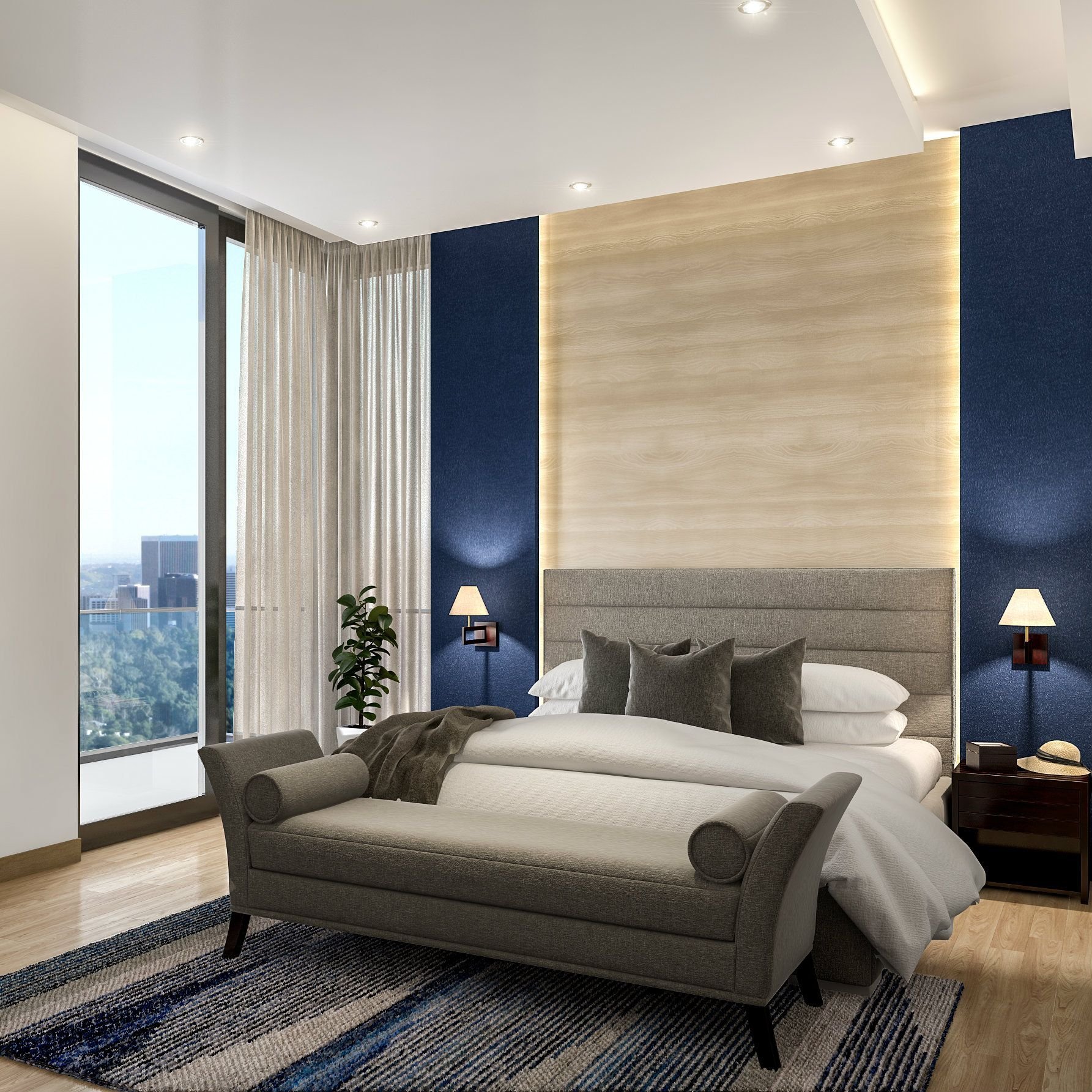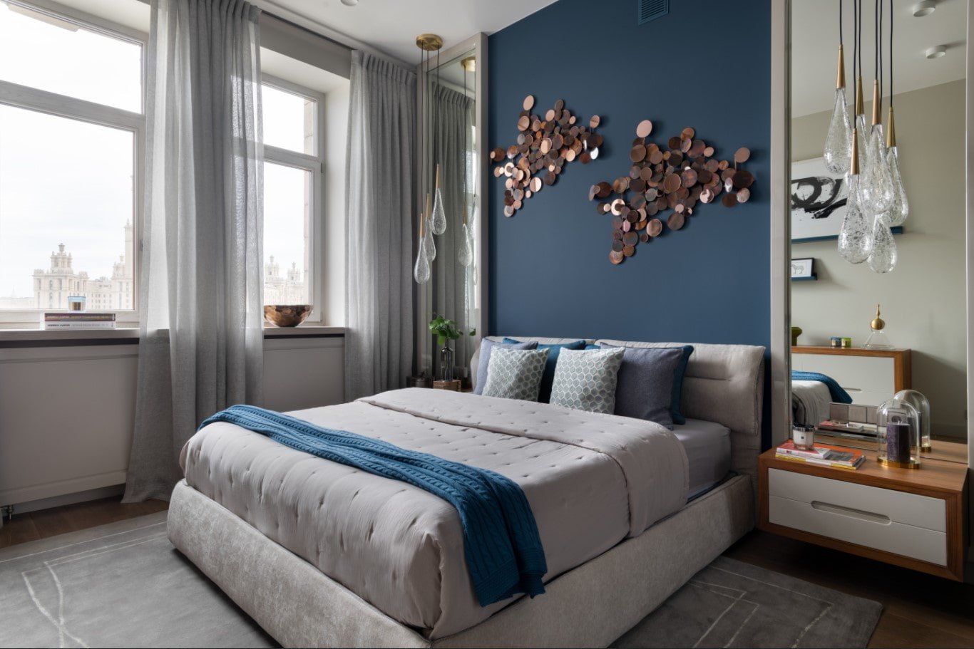 Спальня с синими акцентами