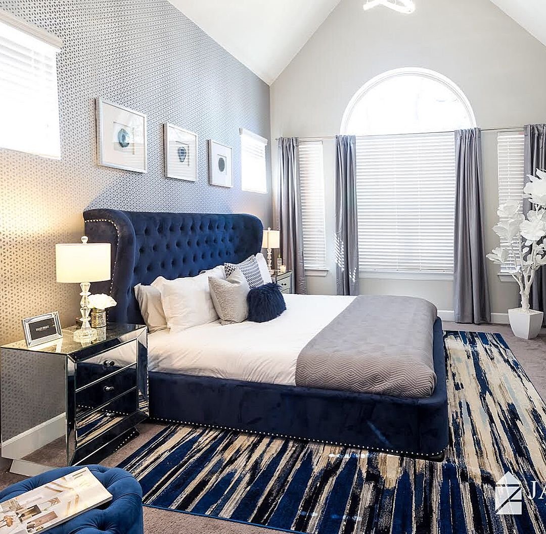 Спальня с синей мебелью