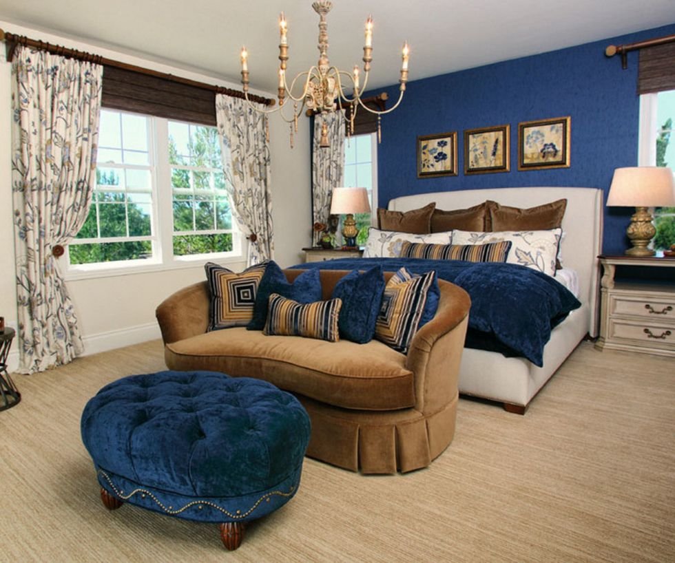 Коричнево голубая спальня