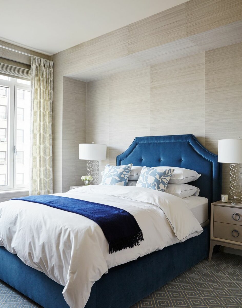 Сине бежевая спальня