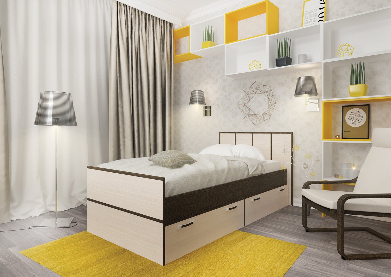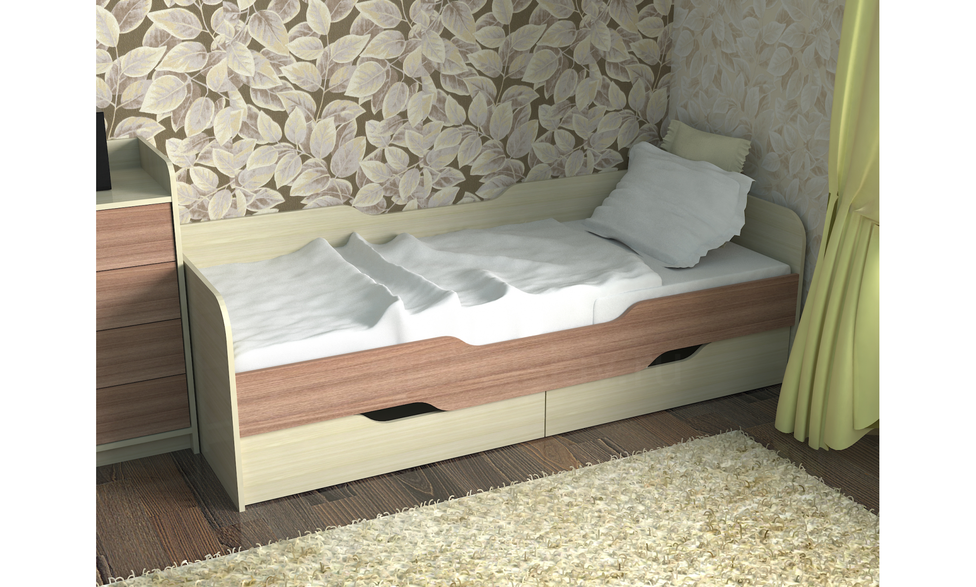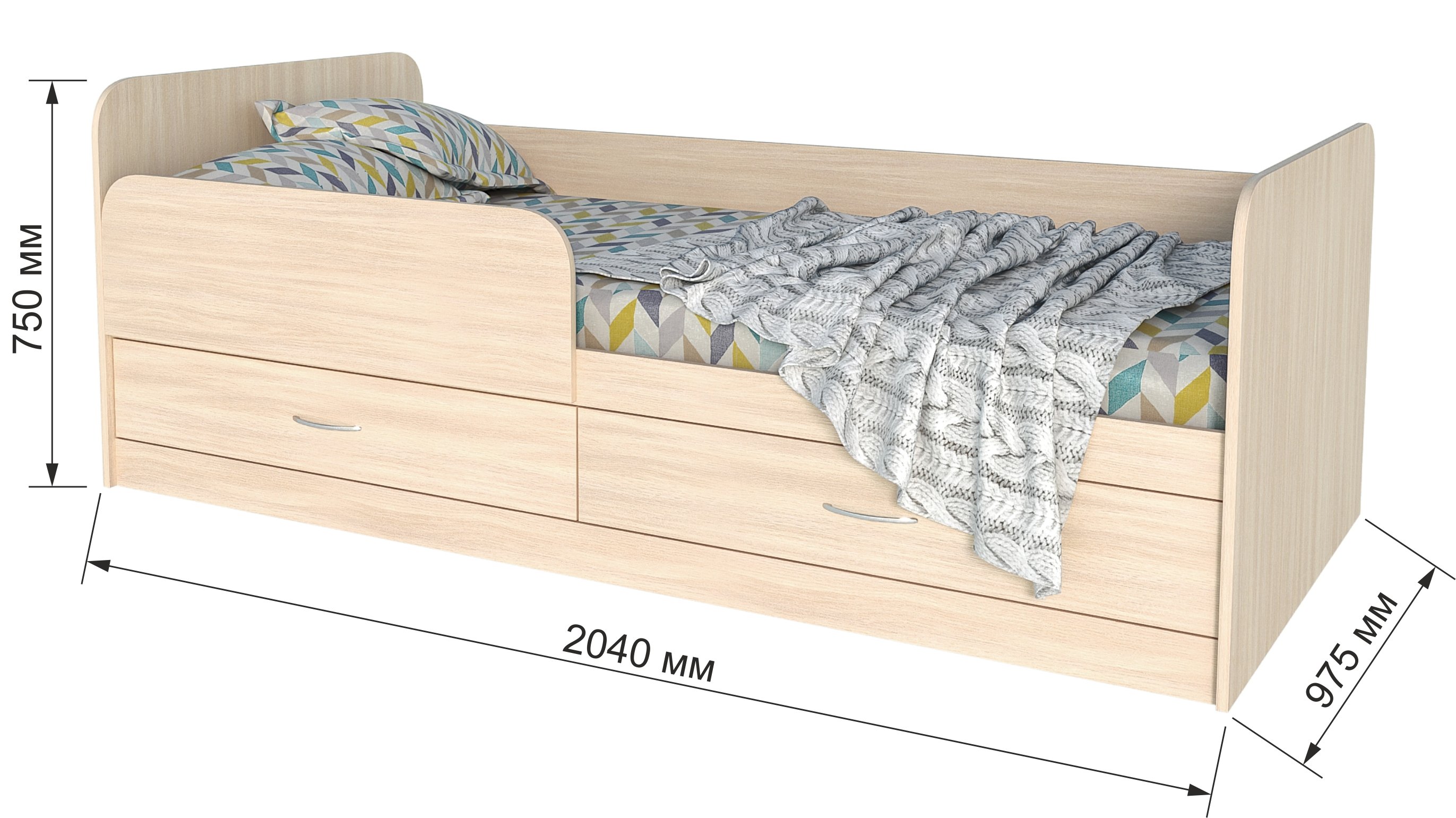 Кровать односпальная с ящиками волна-900