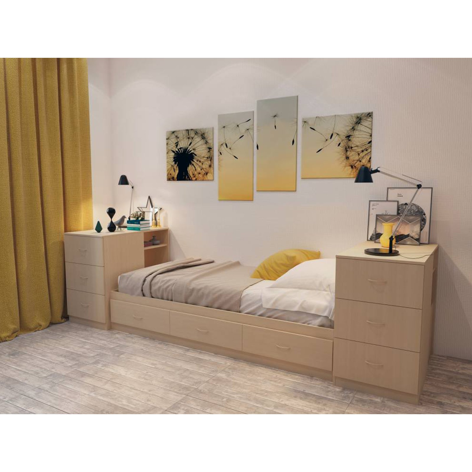 Кровать односпальная молочный дуб