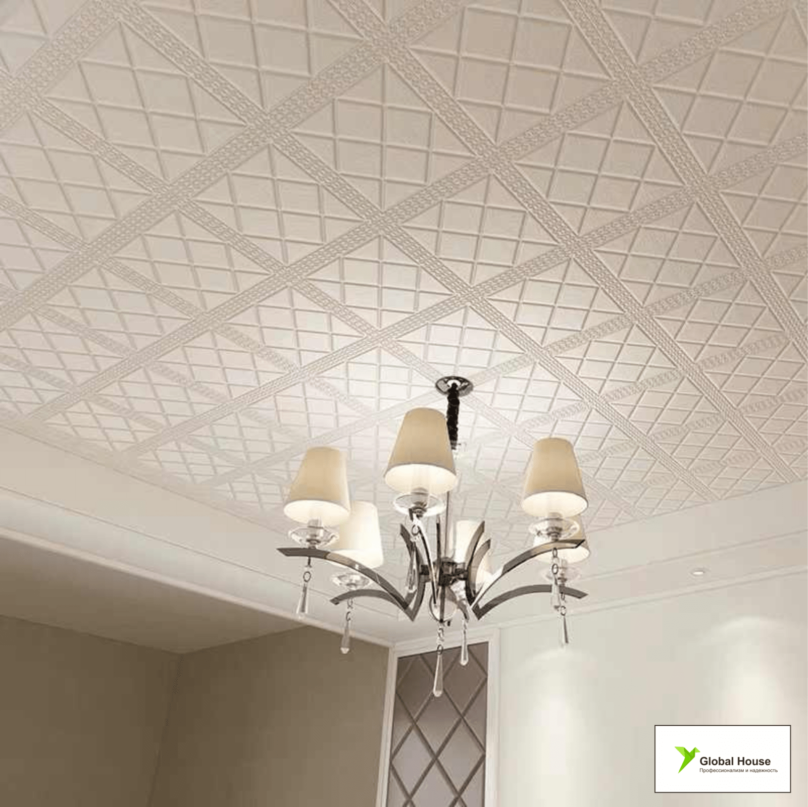 Плитка потолочная бесшовная полистирол белая Формат Сириус