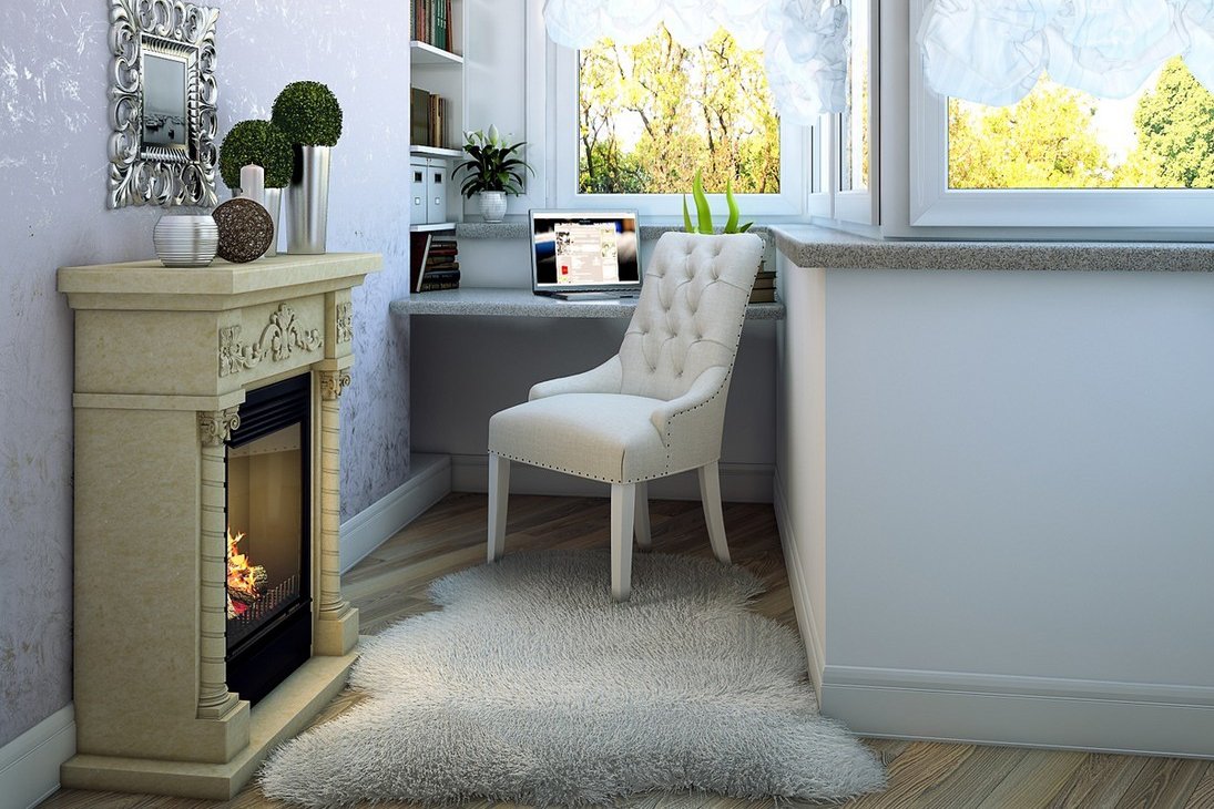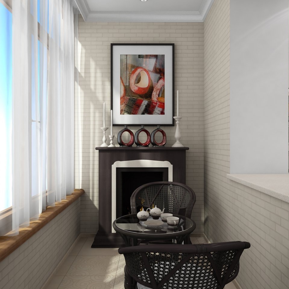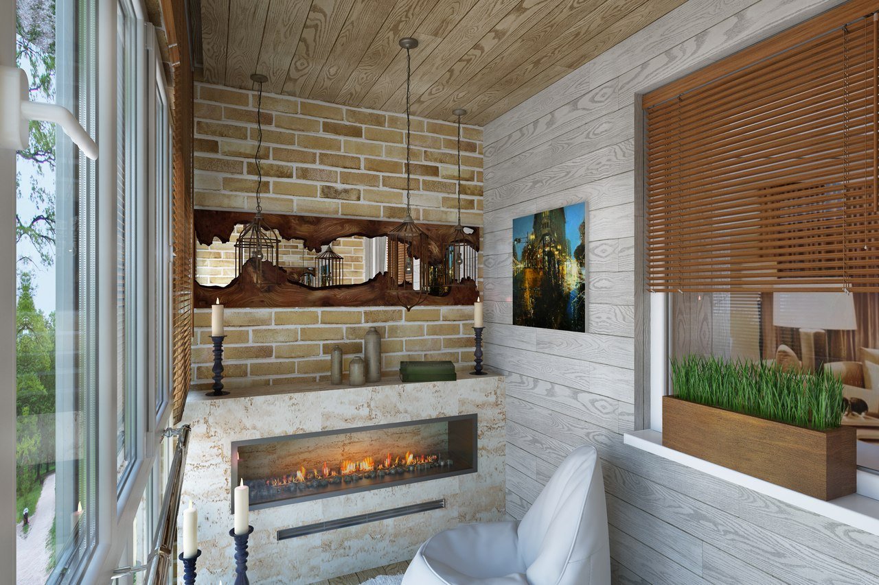 Интерьер балкона с камином
