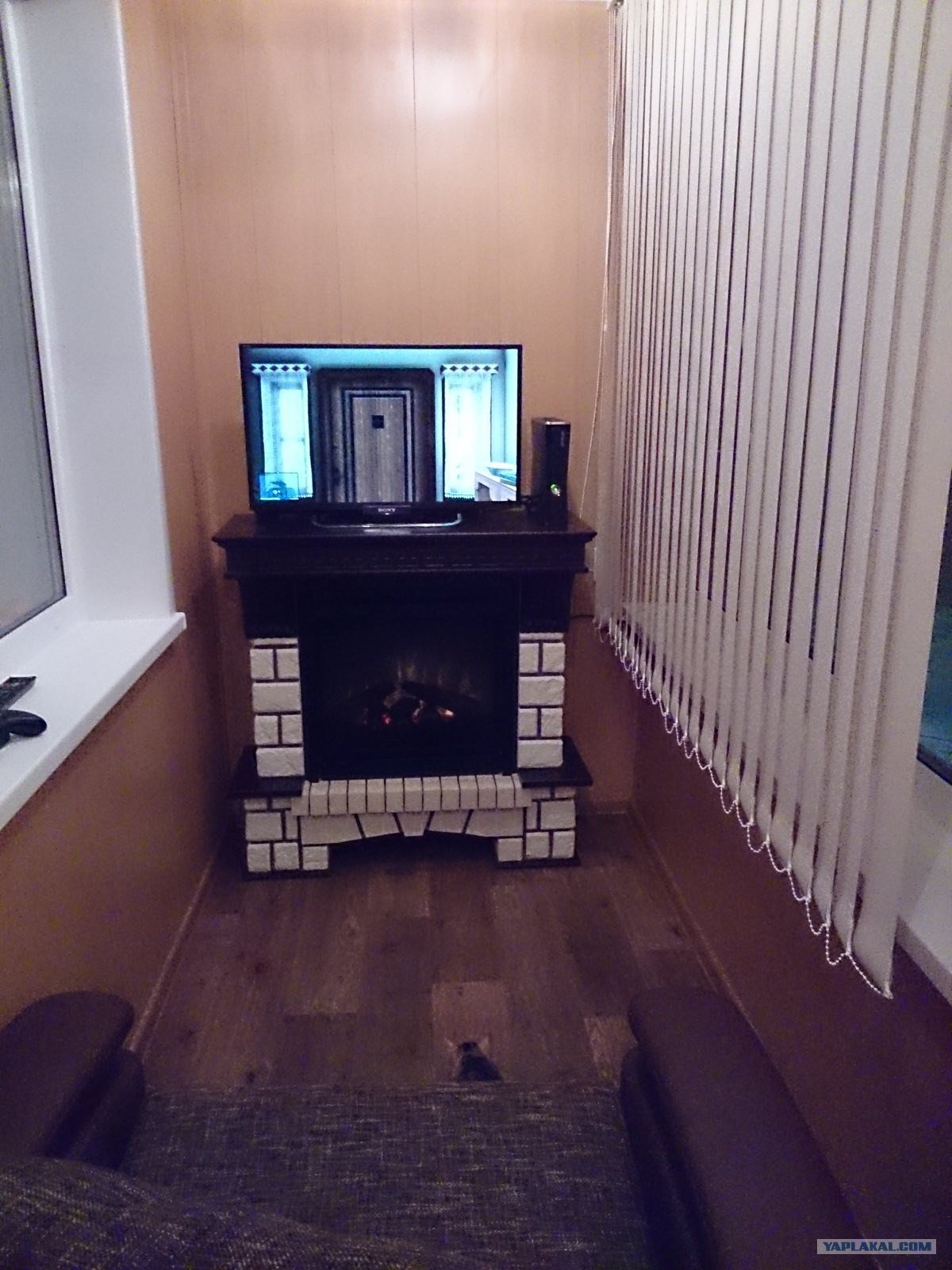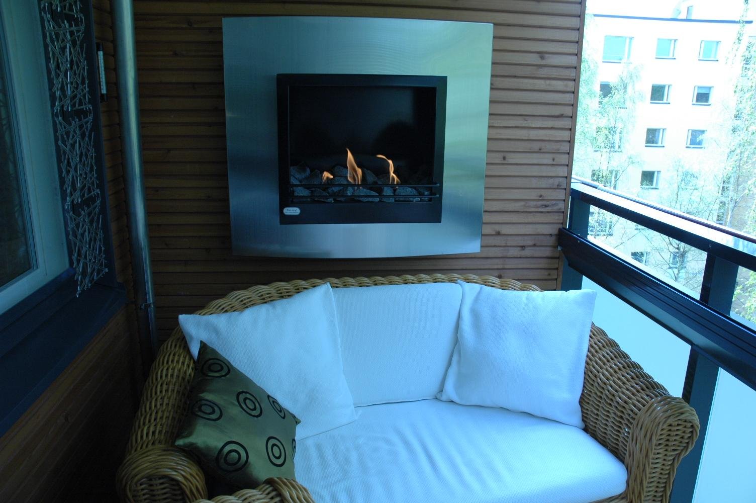 Электрический камин на балконе