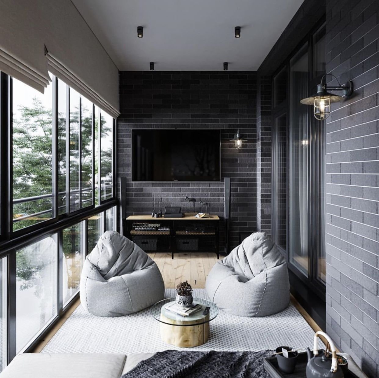 Лоджия в стиле лофт с панорамными окнами