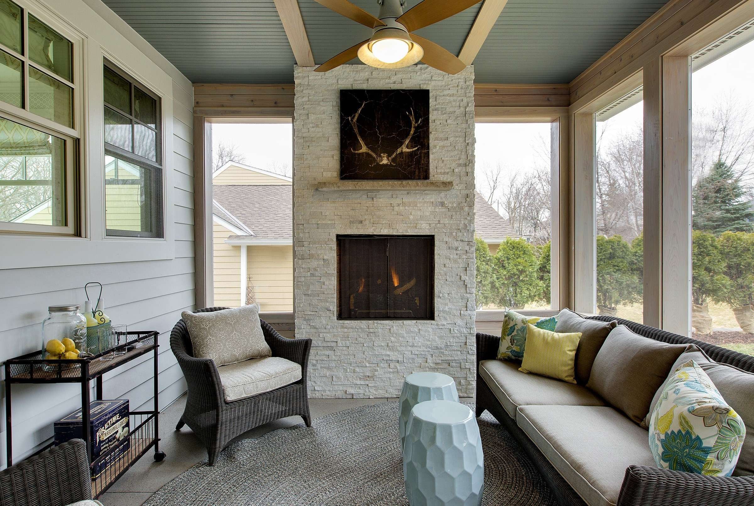 Электрический камин на веранде