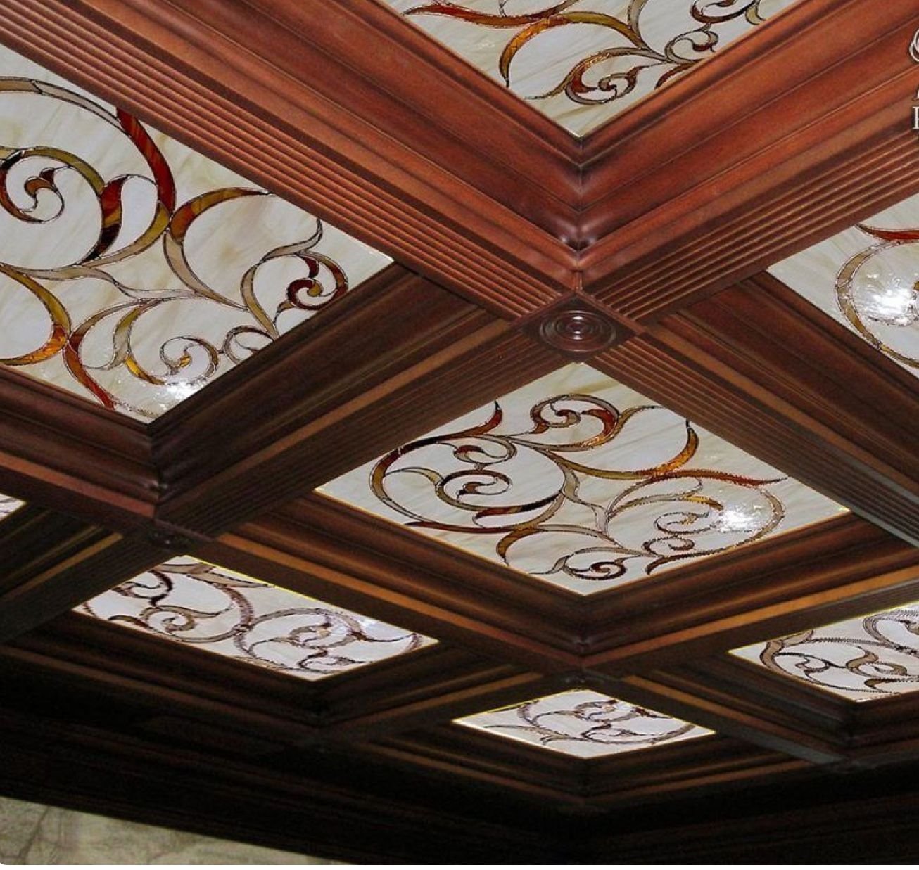 Кессонный витражный потолок