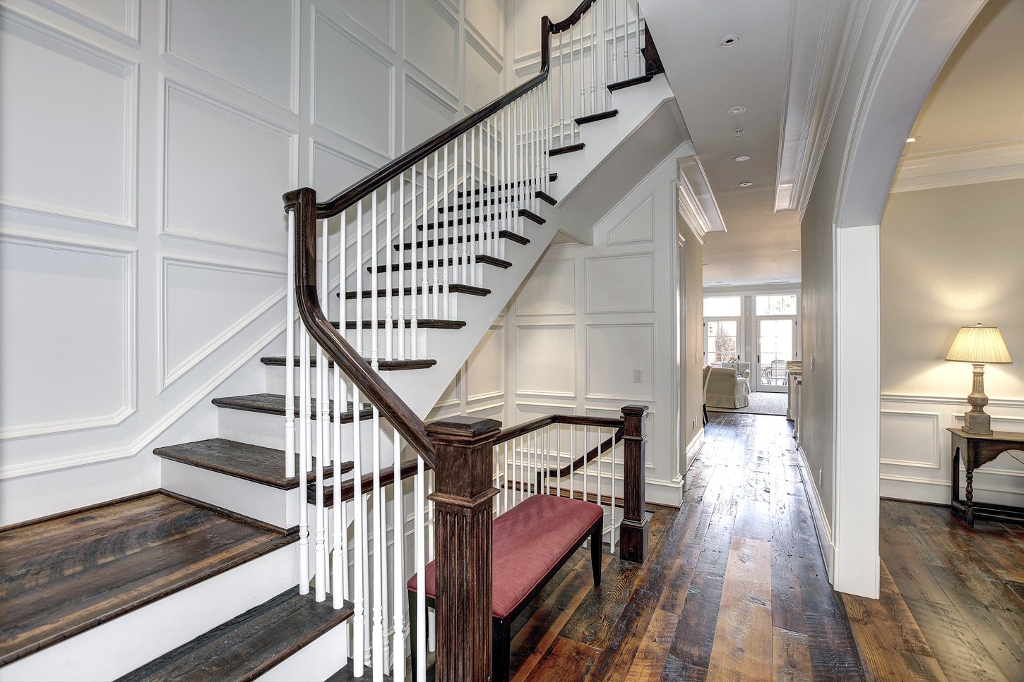 Прихожая с деревянной лестницей