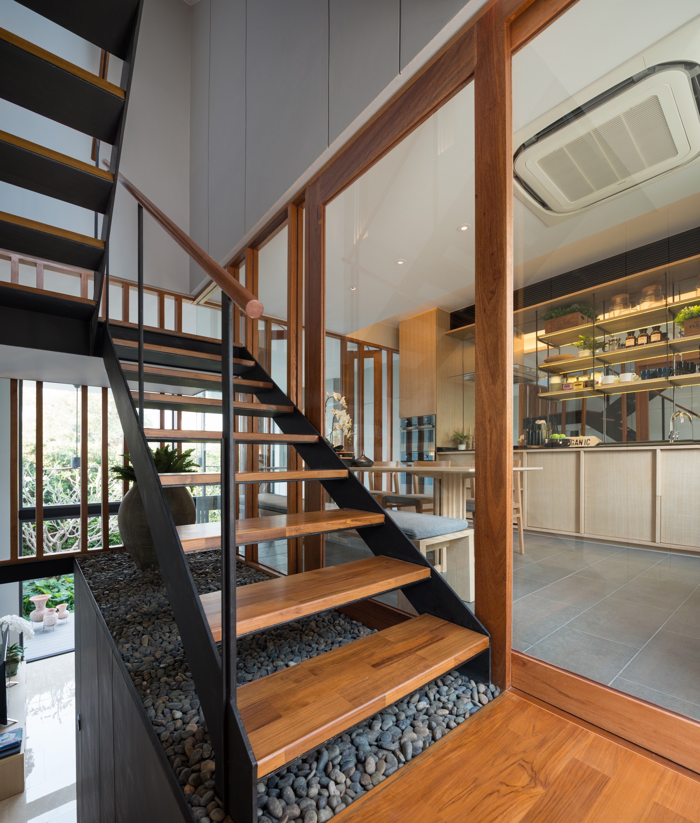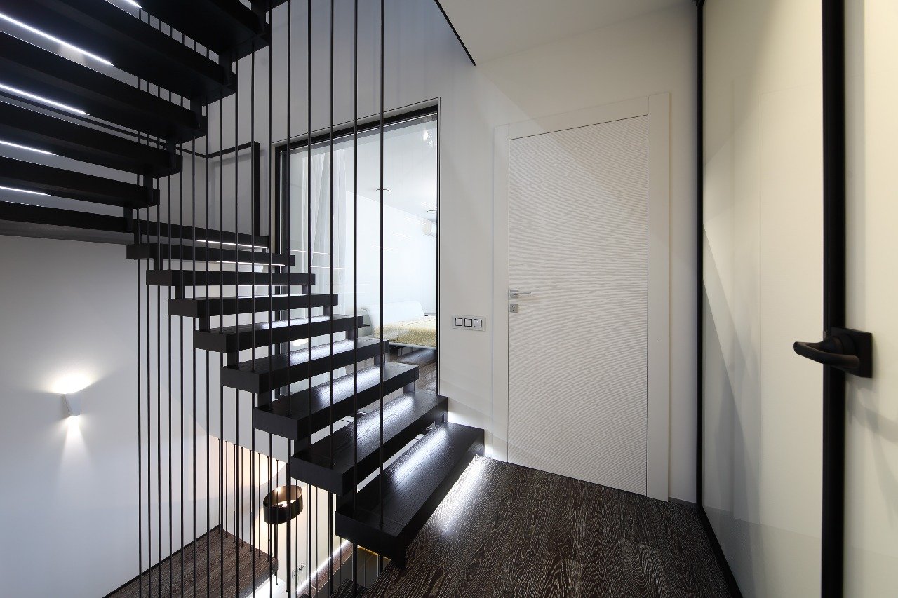 Современное ограждения для лестницы в таунхаусе