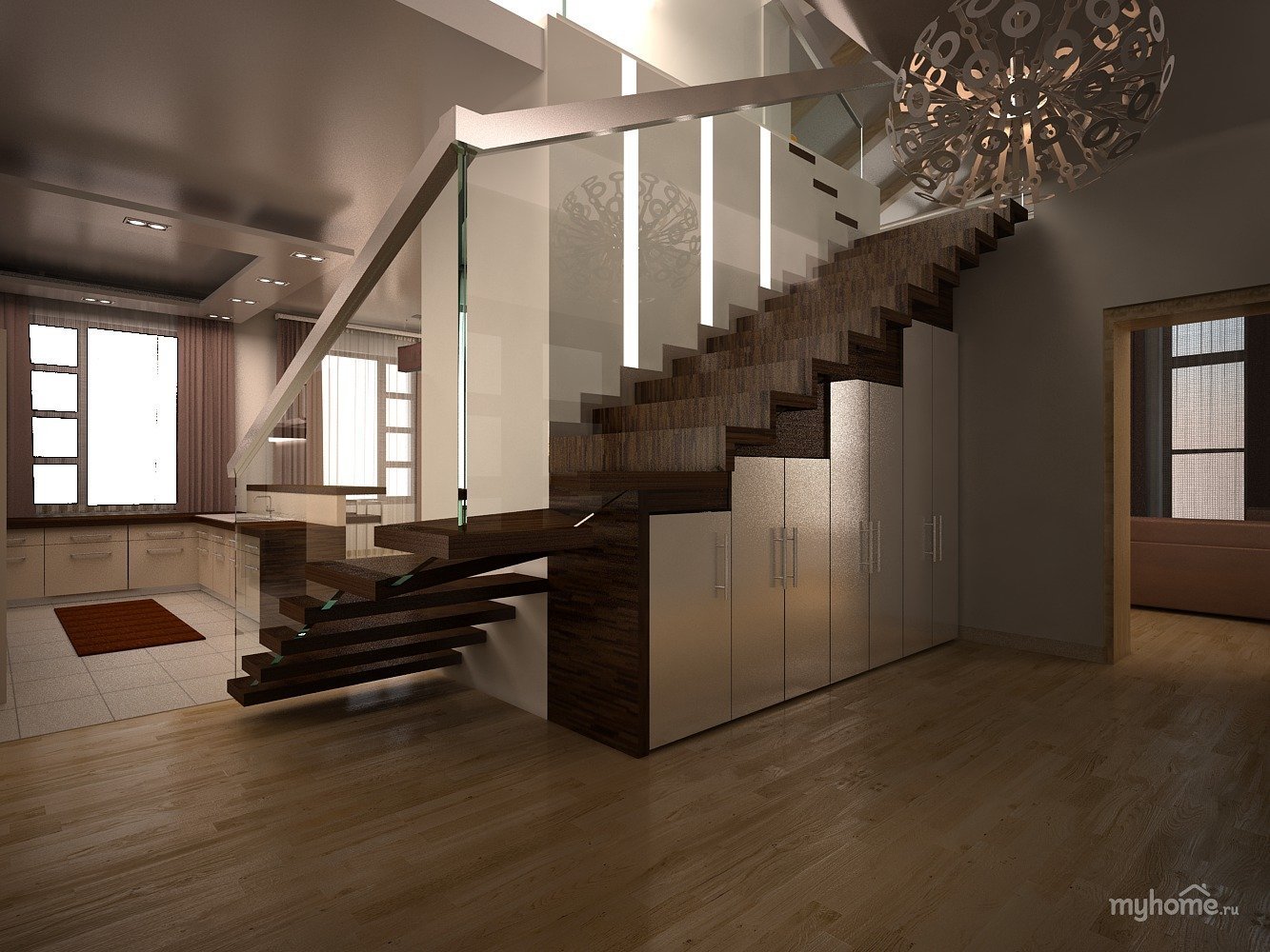 Комментируют Лестница в таунхаусе варианты: