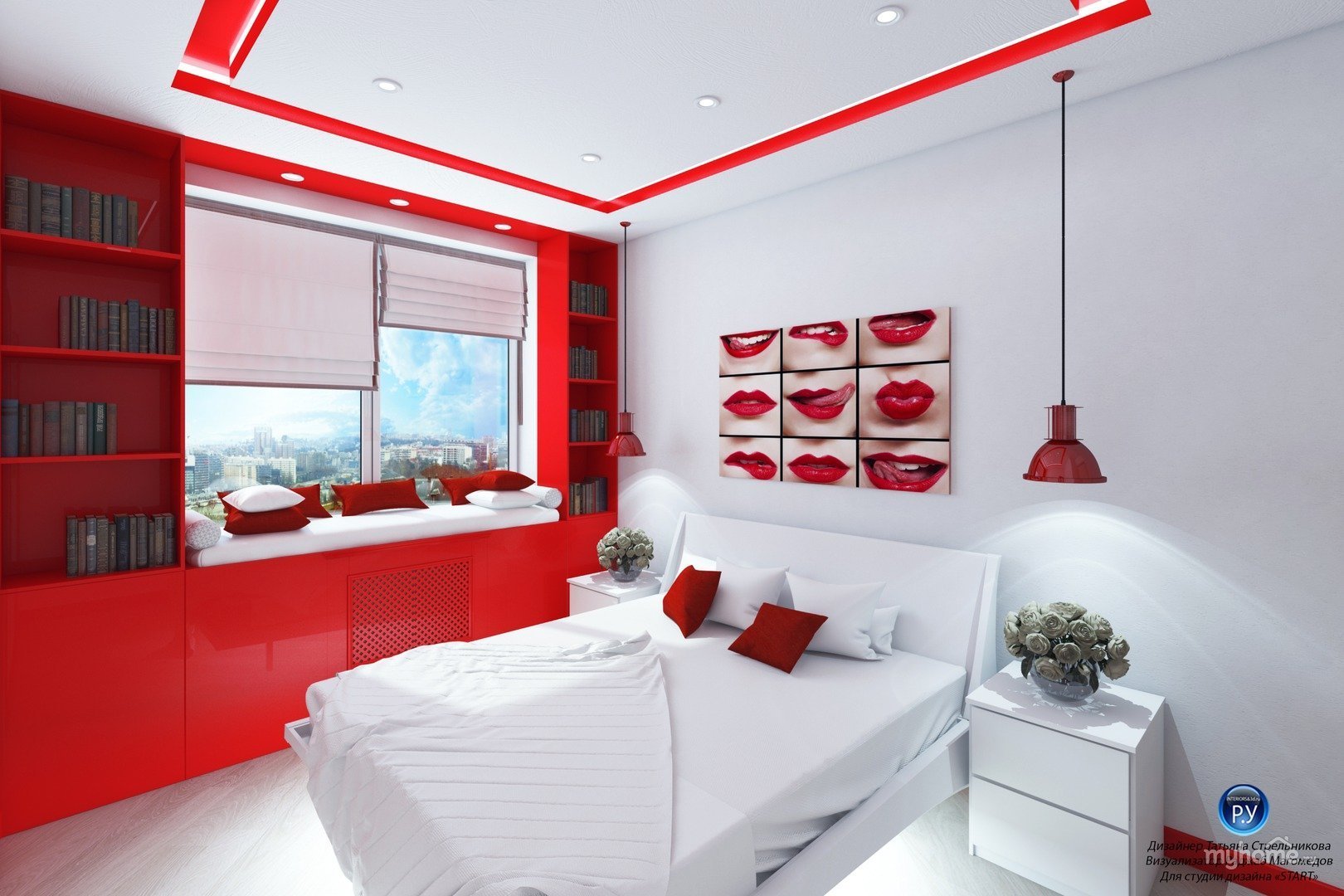 Комната в красно белых тонах