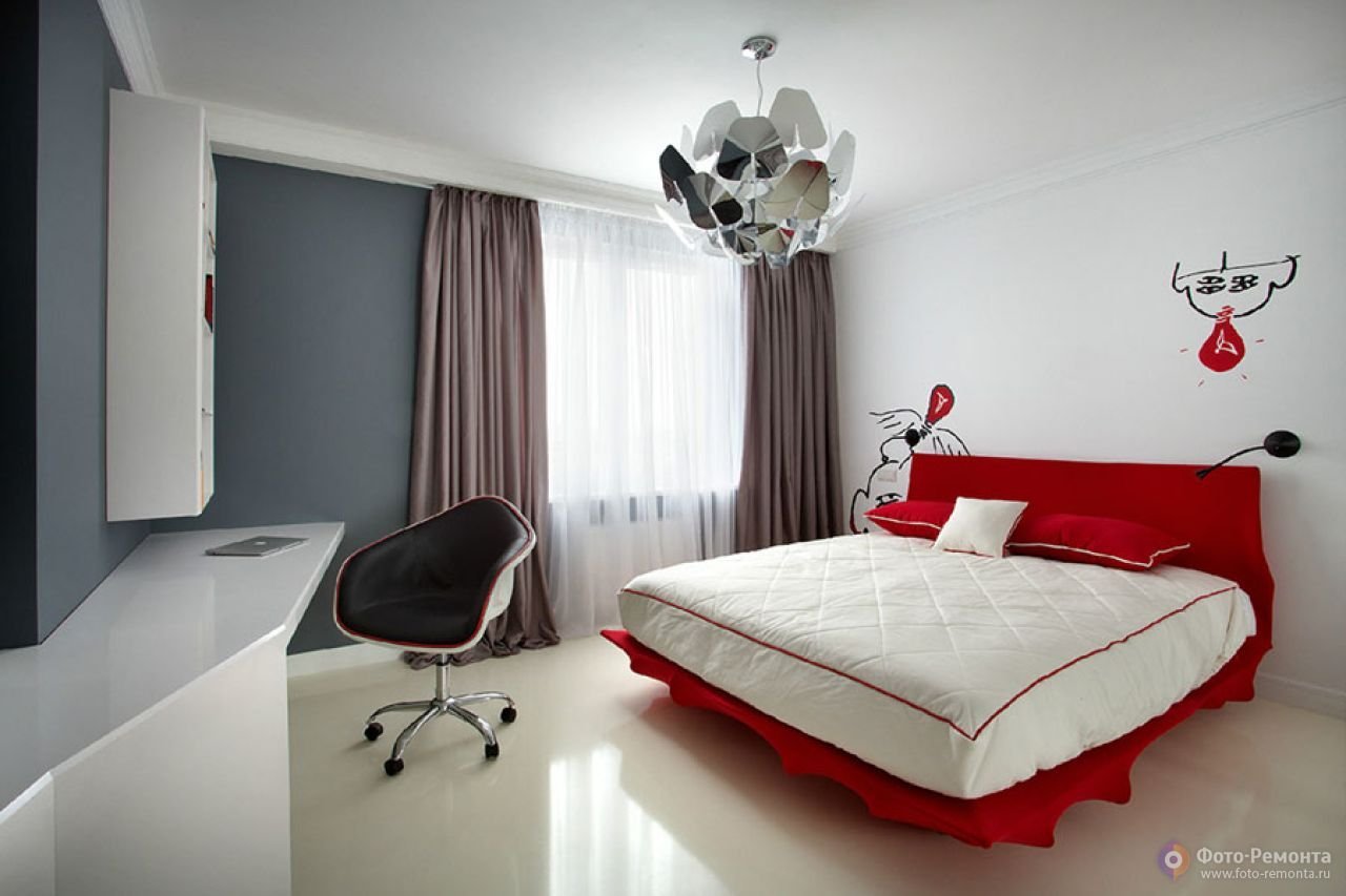 Спальня в красно белых тонах
