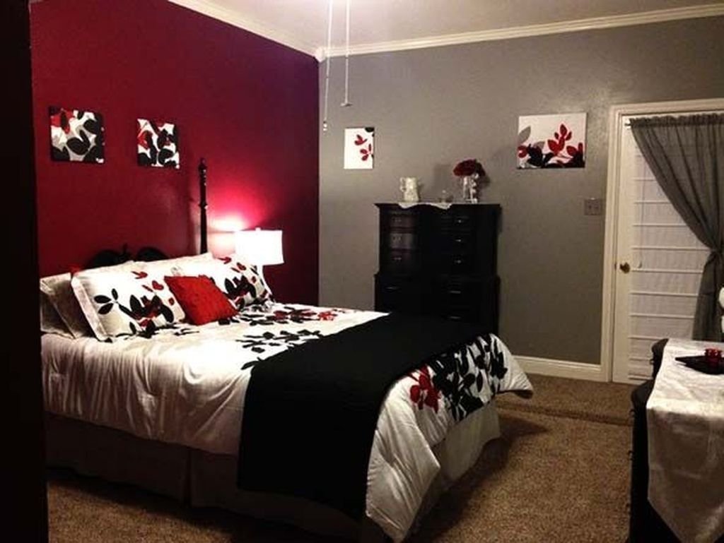 Комментируют Спальня в серо красных тонах: