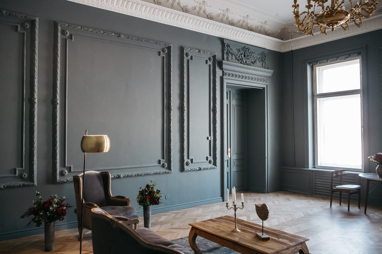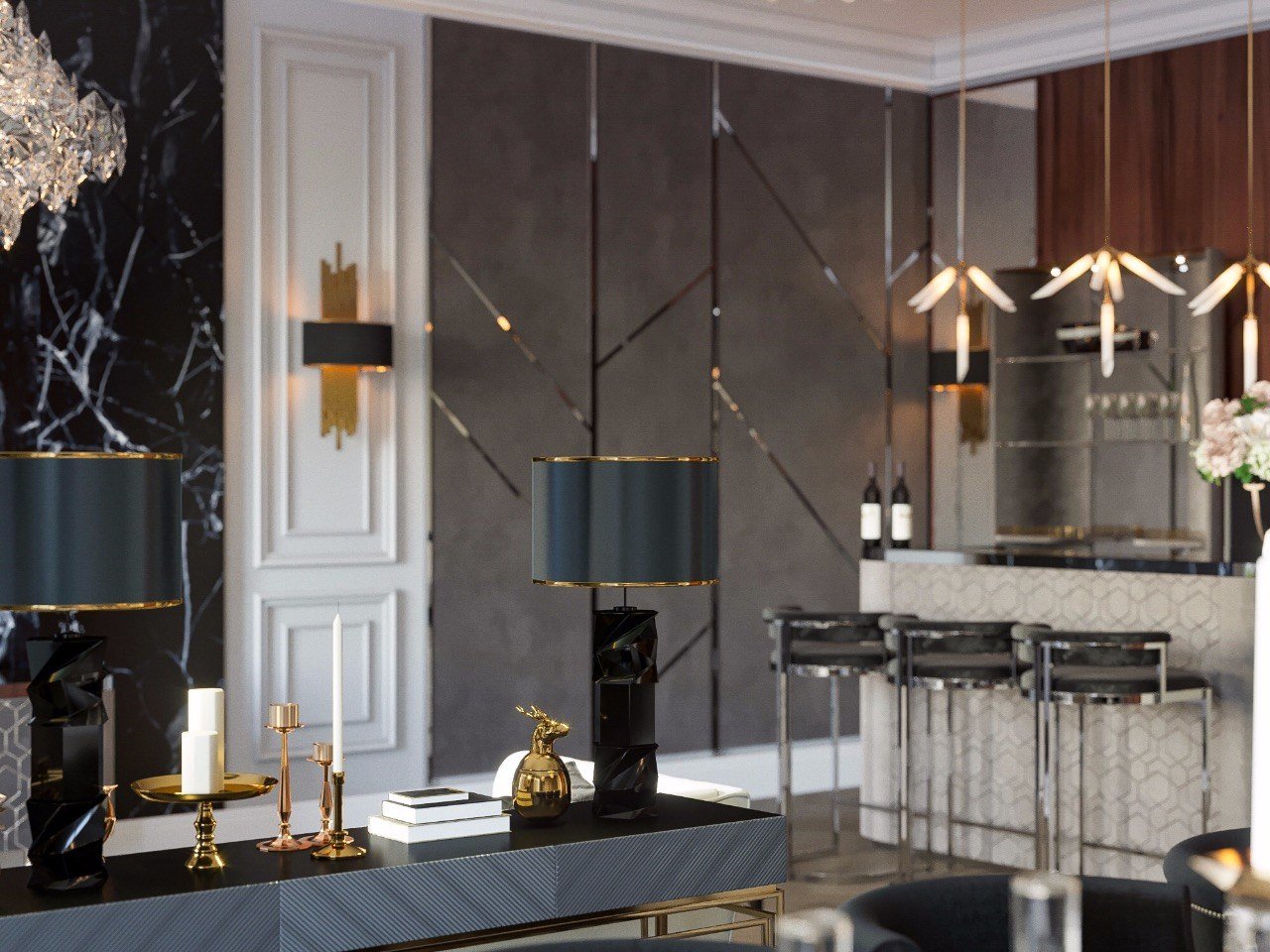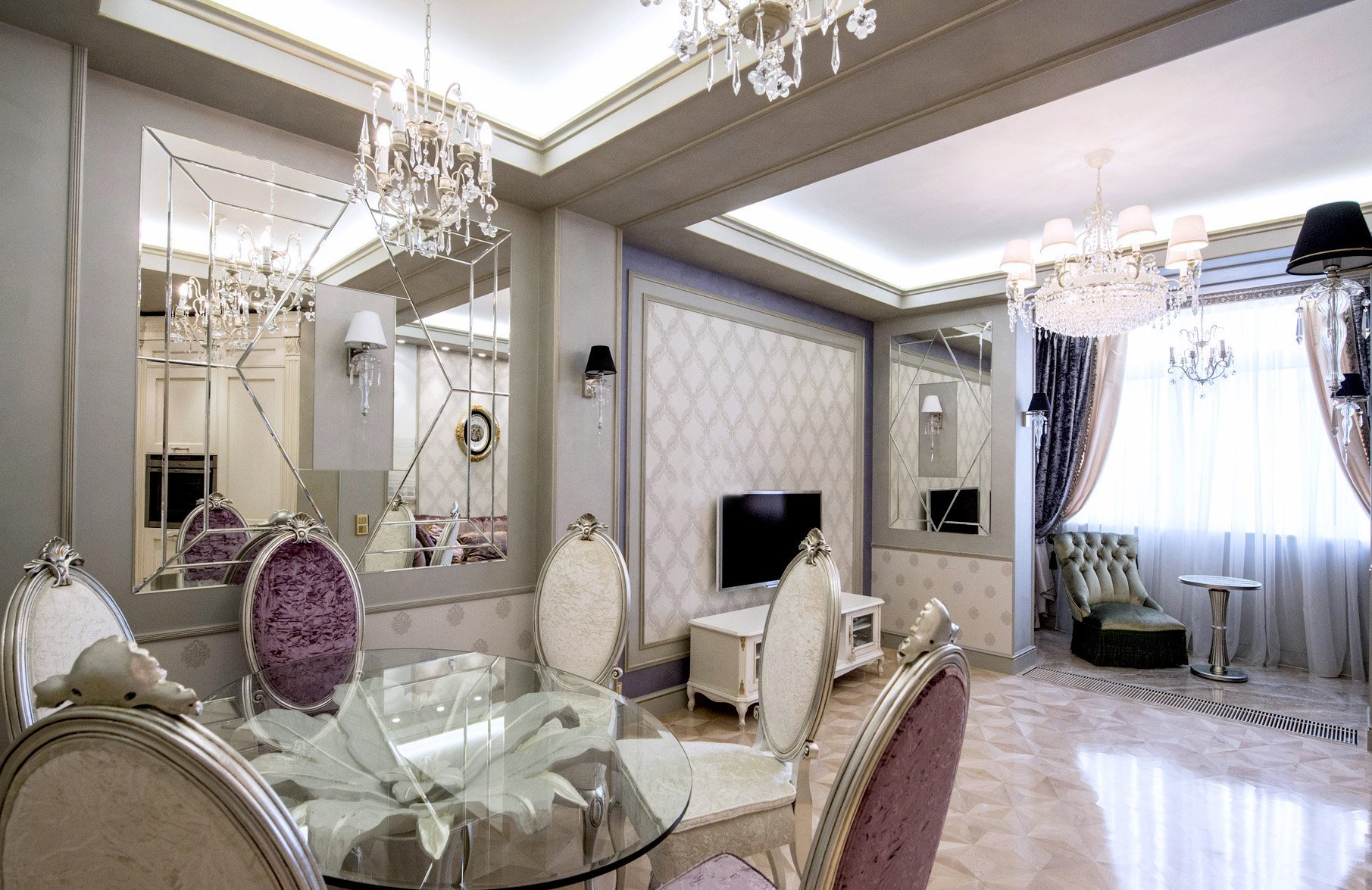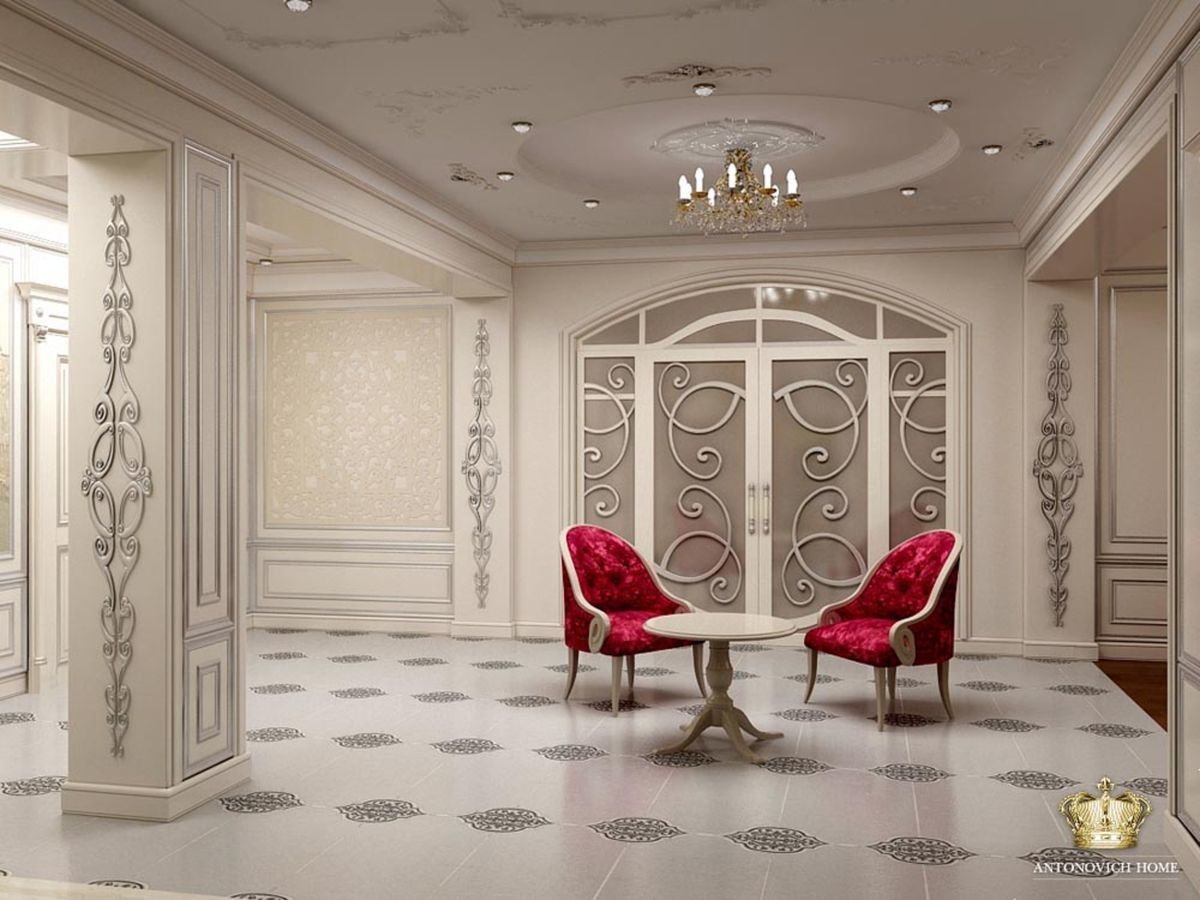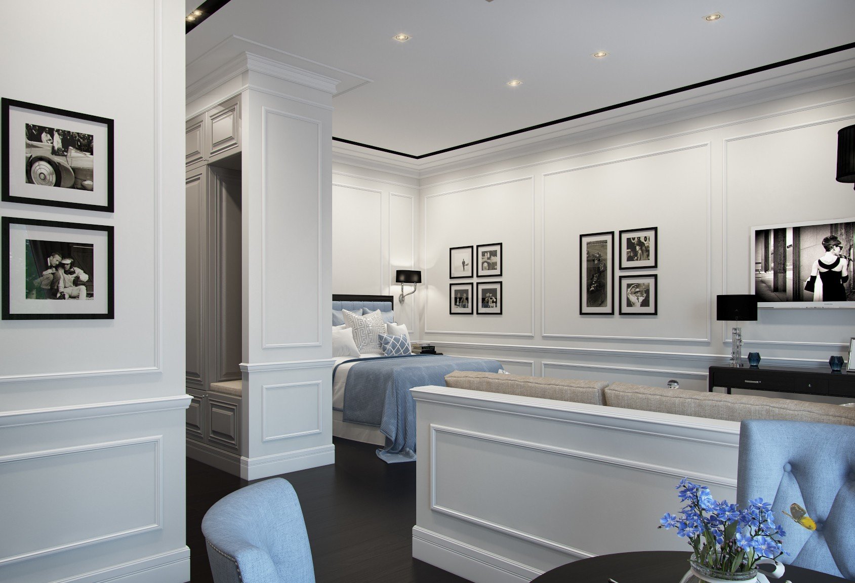 Линкруста в интерьере гостиной в стиле Неоклассика