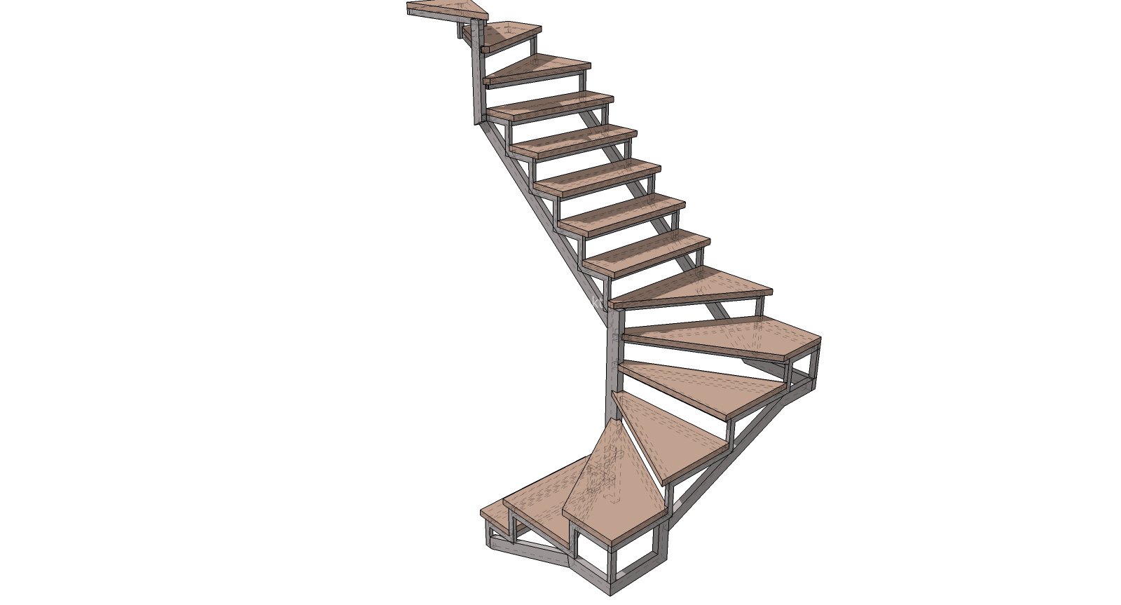 Металлокаркас лестницы с забежными ступенями
