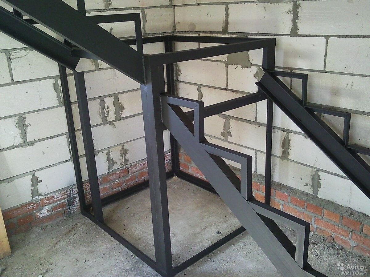 Лестница из профильной трубы на второй этаж с забежными ступенями