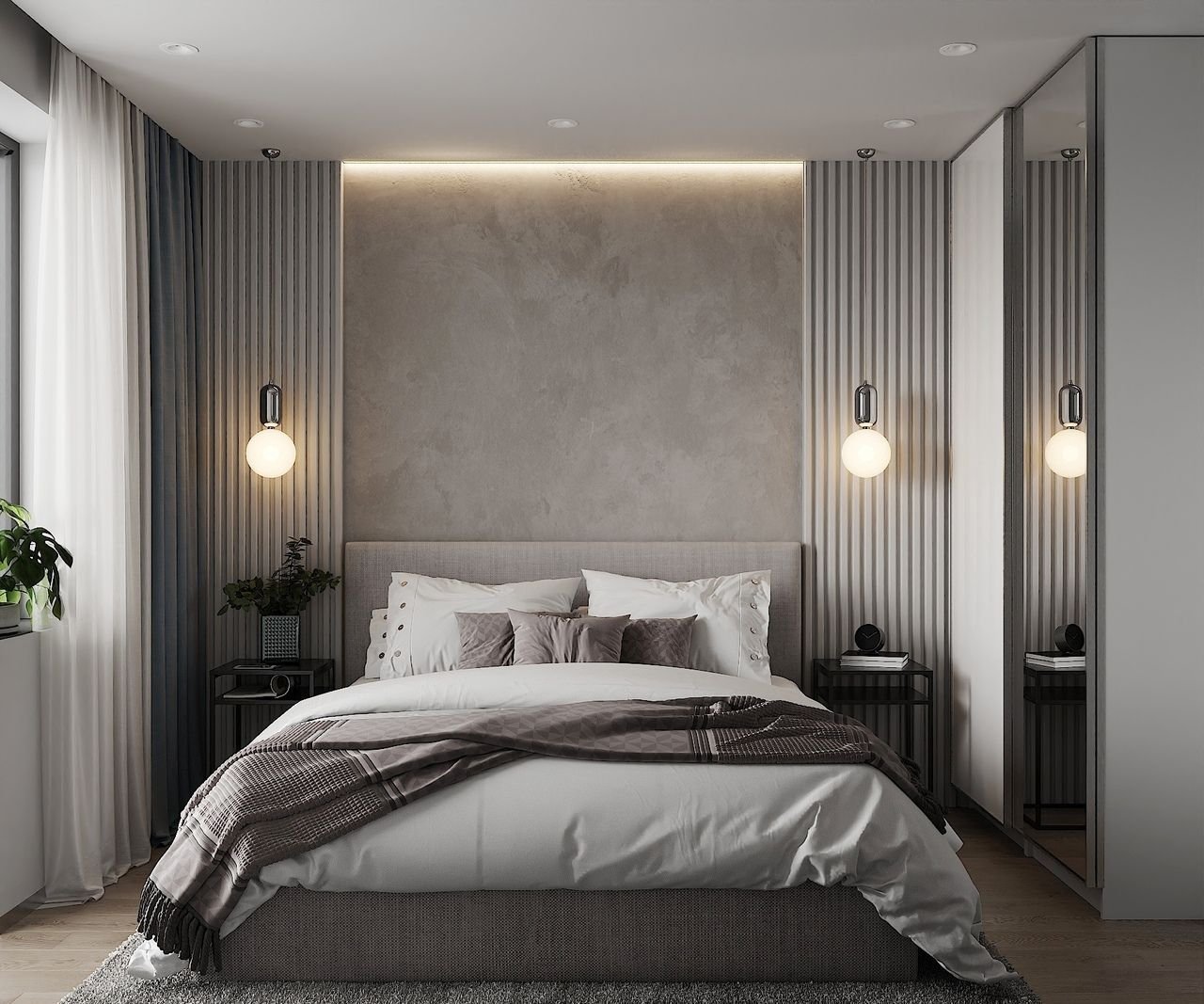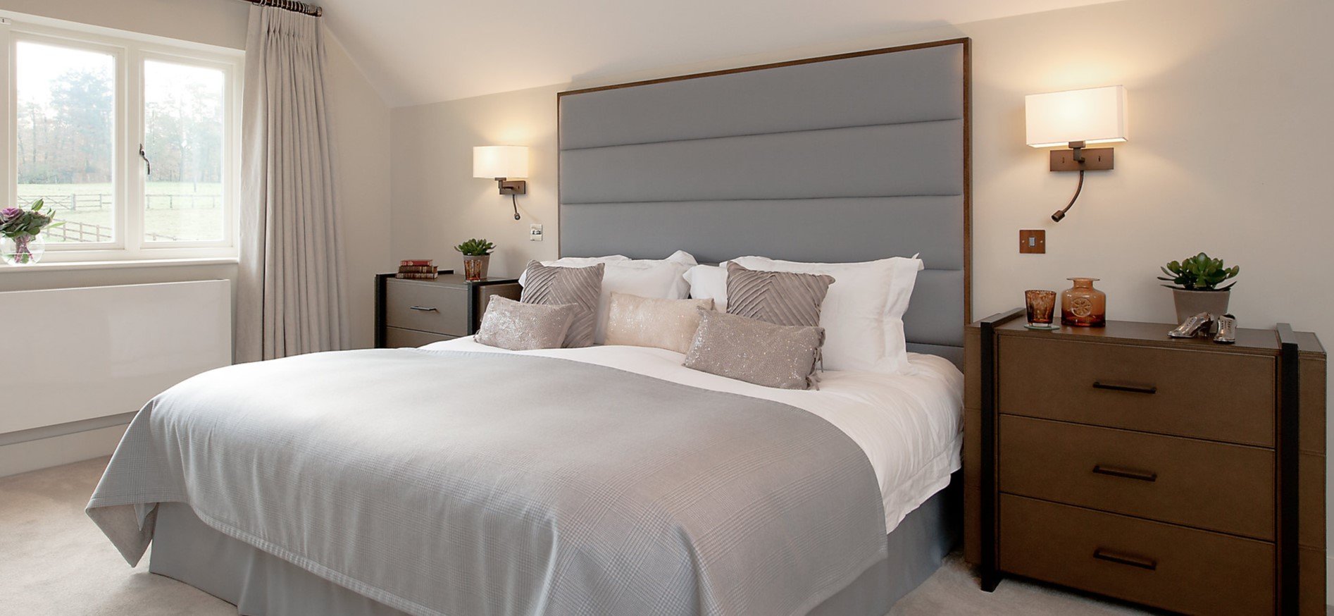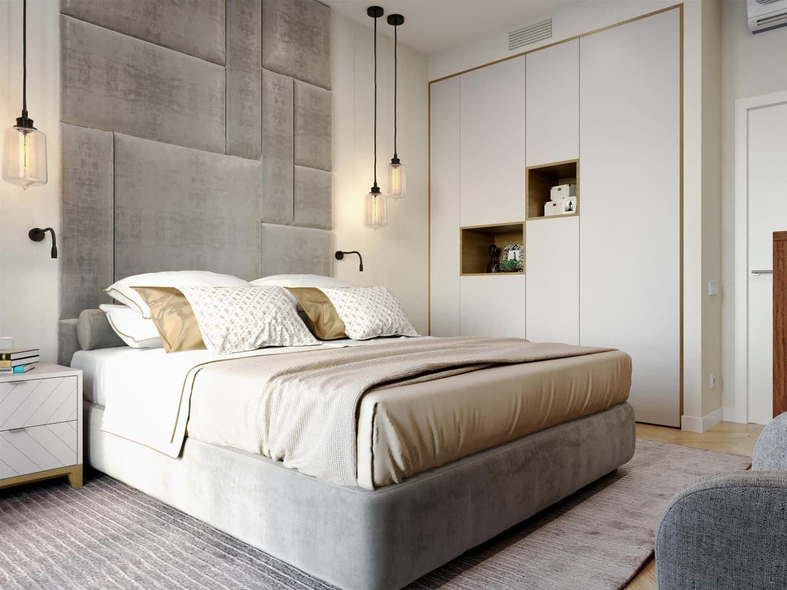 Светильники над изголовьем кровати в спальне